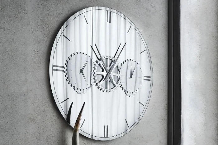 Зеркальные часы Times - это прямое сопоставление зеркальной поверхности и той, которая показывает время. Многомерный и исключительно разработанный, он имеет стандартную зеркальную поверхность или поверхность серо-дымчатого оттенка. Это не только практичный предмет, но и элегантный предмет настенного искусства. Благодаря использованию только лучших материалов, он будет устойчивым на долгие годы. Сделанные в Италии, зеркальные часы Times украшены римскими цифрами и стальными деталями, напечатанными шелкографией. Разработанный Андреа Лукателло для Cattelan Italia, он является незаменимым продуктом для современного дома.Характеристики
