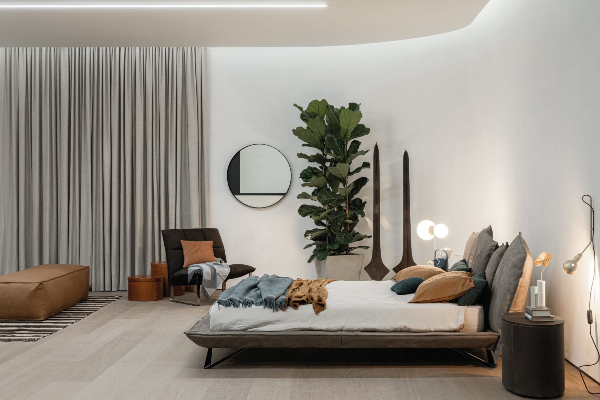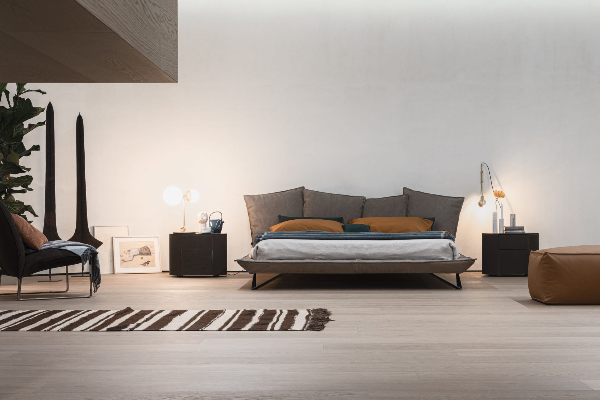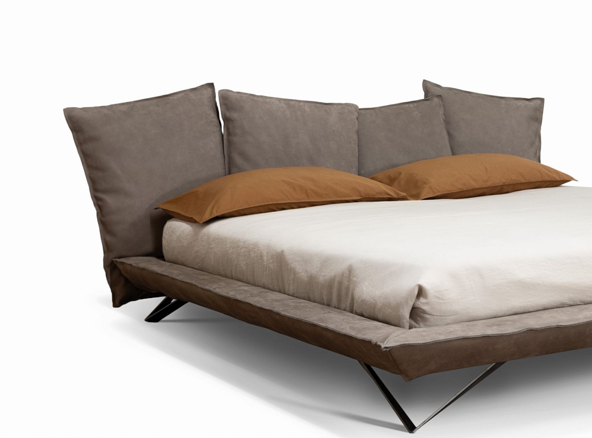 Современность - это также состояние ума тех, кто избегает привычки и решает рискнуть, такие как неровные линии, сильные черты лица и стройные формы.Кровать с изголовьем из металла, набитого пенополиуретаном, покрытым акриловым волокном. Каркас кровати имеет металлическую конструкцию, обитую пенополиуретаном и акриловым волокном. Ножки доступны из матового лакированного металла антрацитового цвета с отделкой soft touch. Матрас в комплект не входит.