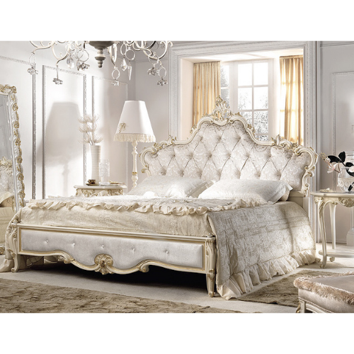 Двуспальная кровать с фигурным мягким изголовьем и изножьем. Декорирована резьбой. Изголовье обито в технике капитоне. Возможны другие варианты отделки и обивкиХарактеристики