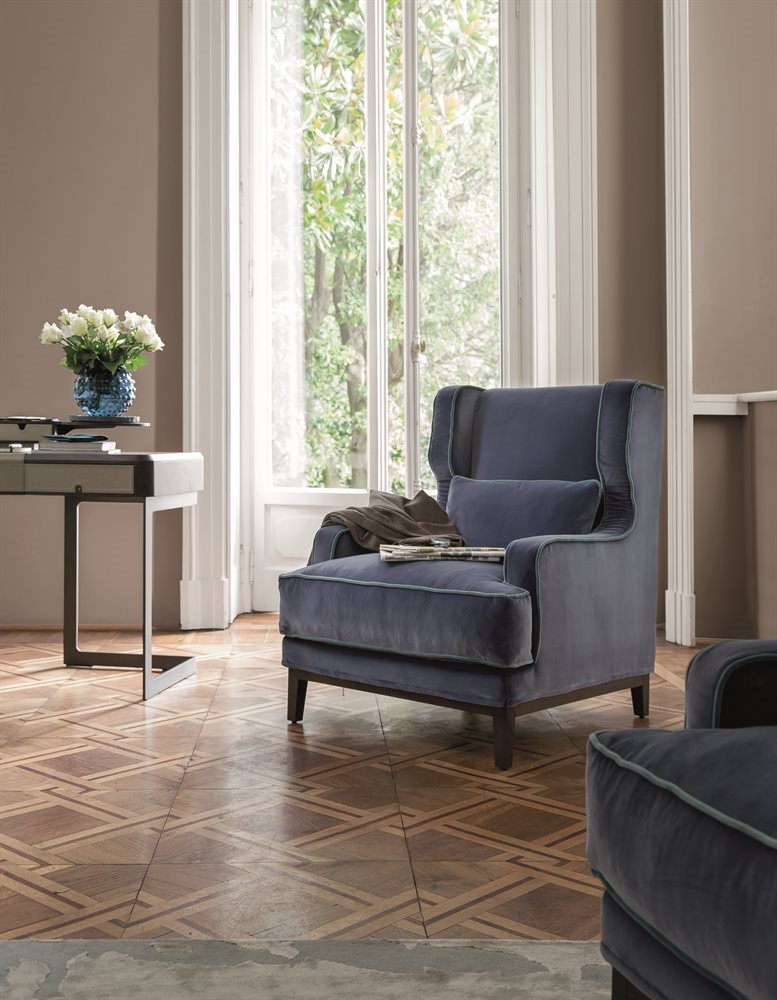 Кресло с прочной структурой ясеня и съемным чехлом из тканей коллекции, с подушкой для поясницы.Характеристики