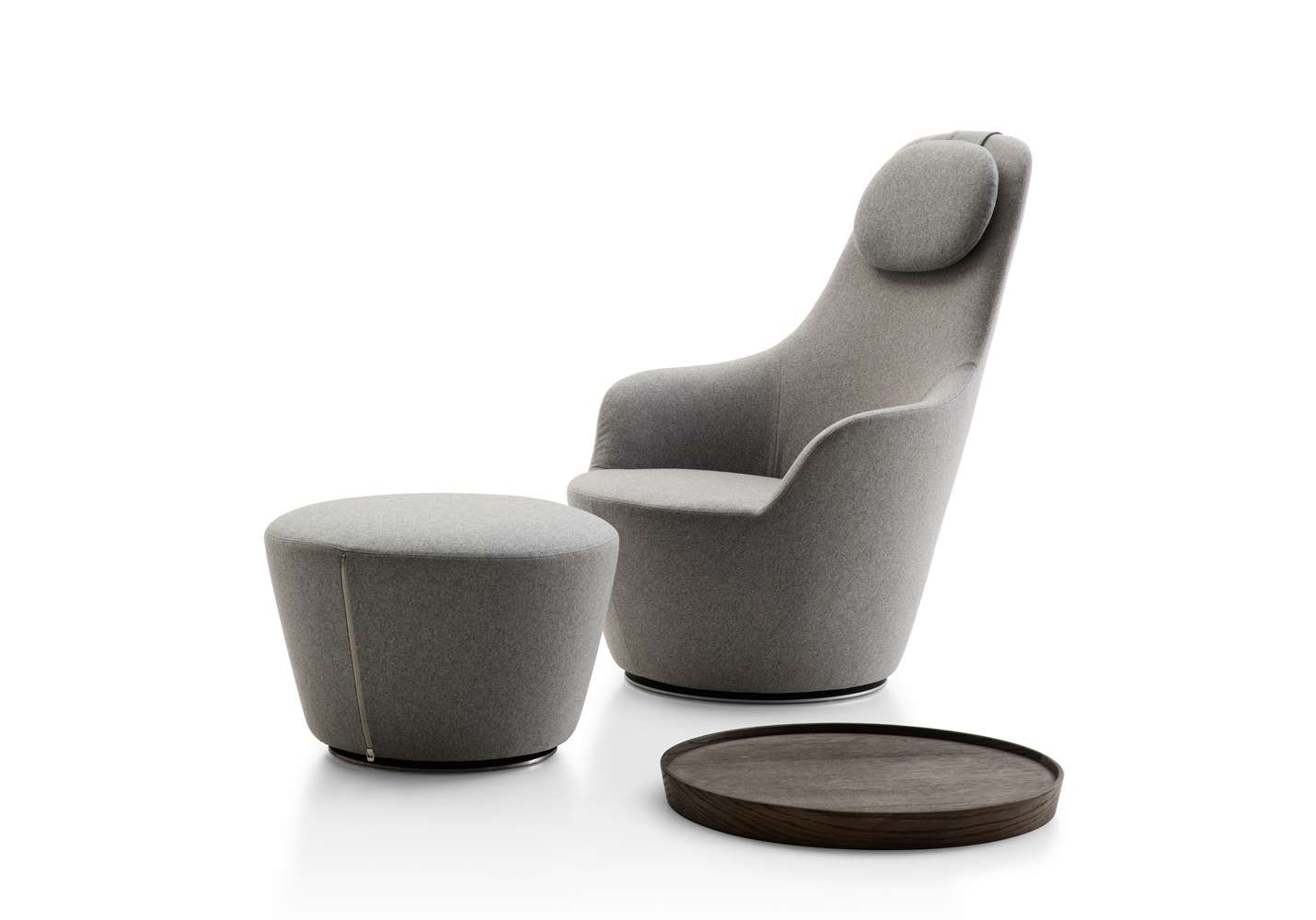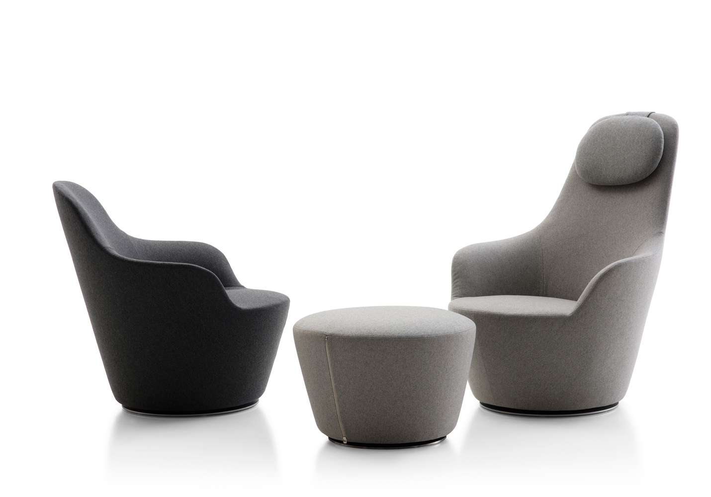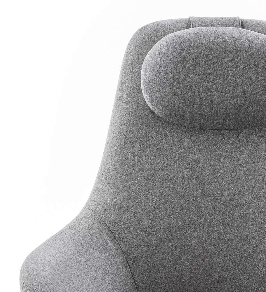 Наото Фукасава продолжает свои исследования перевернутых сидений в форме усеченного конуса, и в этом проекте рассматривается потребность B&B Italia в создании сидений с подлокотниками. Две формы эргономично спроектированы и разработаны для получения удобного расслабляющего кресла с высокой спинкой и подголовником и кресла для беседы с низкой спинкой. Оба кресла имеют поворотное основание и видимые металлические петли в задней части, которые, как и в культовой серии Papilio, позволяют снимать чехол, доступный из ткани или кожи. К этим сиденьям добавляется третья форма, пуфик, на котором можно установить поднос, что позволяет использовать его в качестве небольшого стола.Характеристики