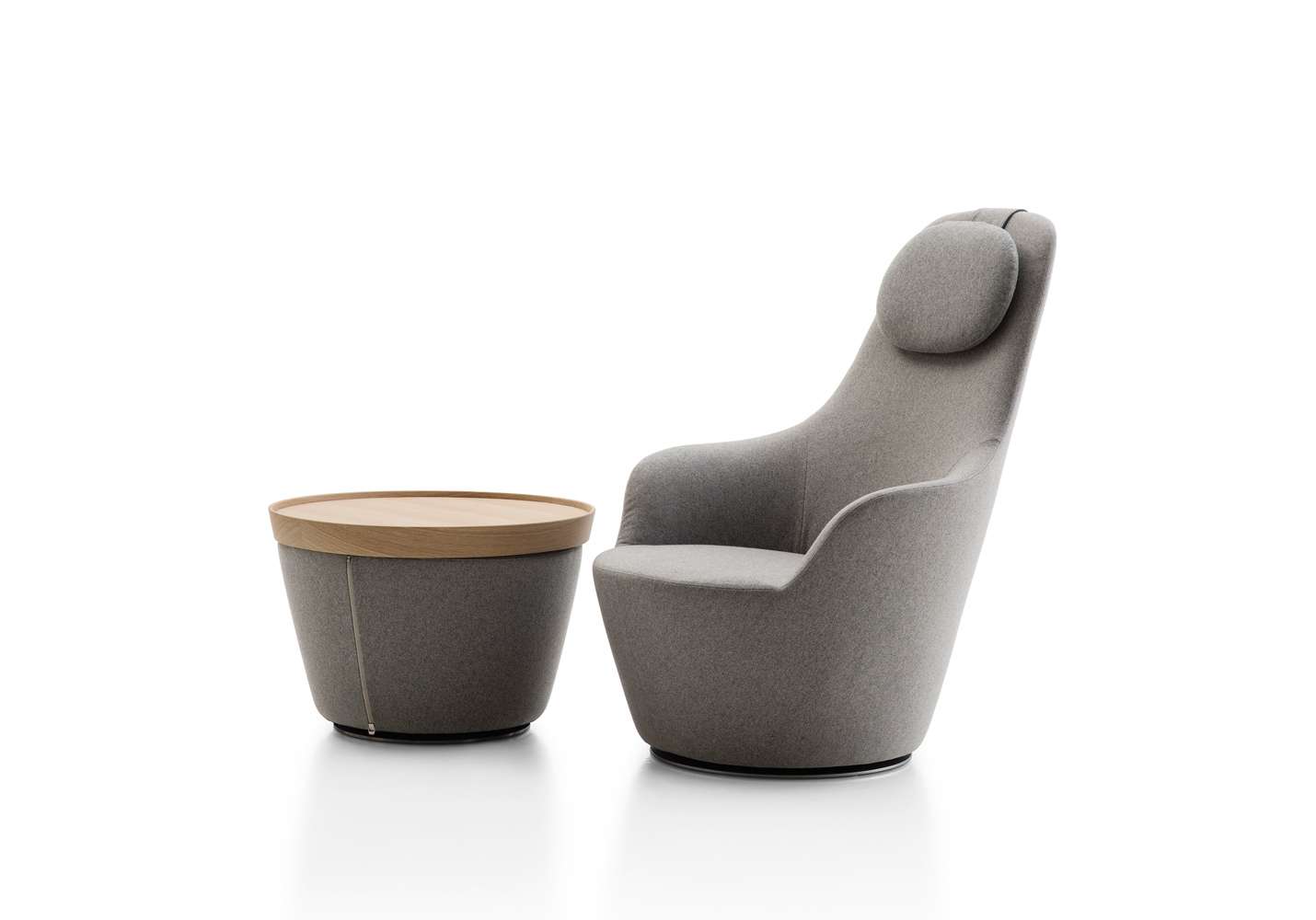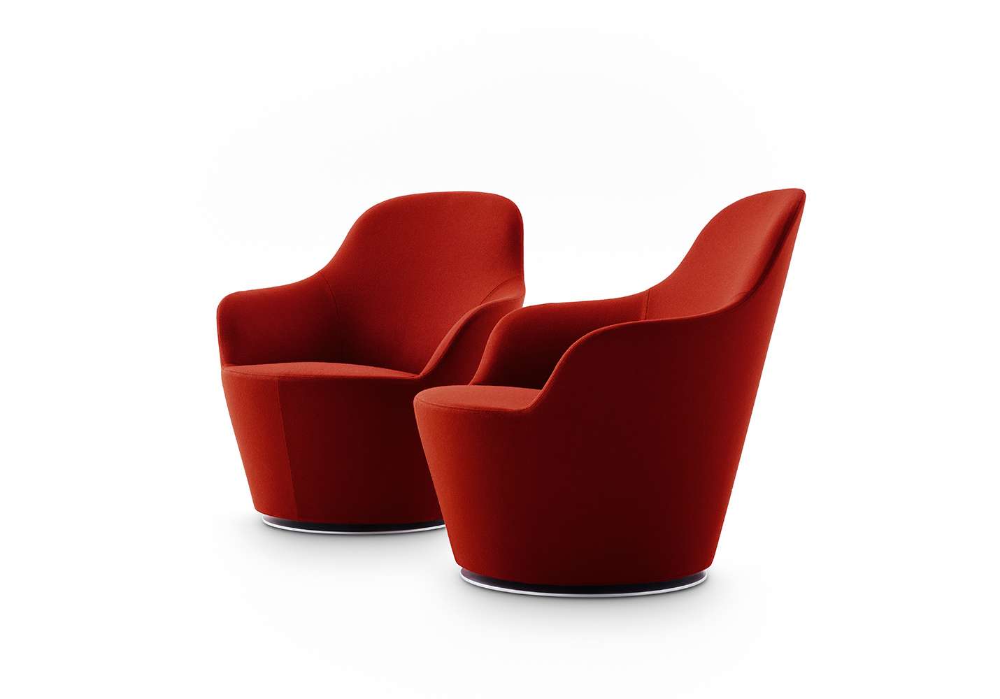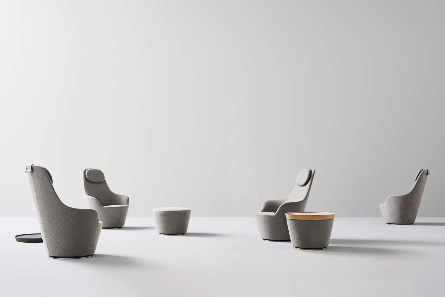 Наото Фукасава продолжает свои исследования перевернутых сидений в форме усеченного конуса, и в этом проекте рассматривается потребность B&B Italia в создании сидений с подлокотниками. Две формы эргономично спроектированы и разработаны для получения удобного расслабляющего кресла с высокой спинкой и подголовником и кресла для беседы с низкой спинкой. Оба кресла имеют поворотное основание и видимые металлические петли в задней части, которые, как и в культовой серии Papilio, позволяют снимать чехол, доступный из ткани или кожи. К этим сиденьям добавляется третья форма, пуфик, на котором можно установить поднос, что позволяет использовать его в качестве небольшого стола.Характеристики