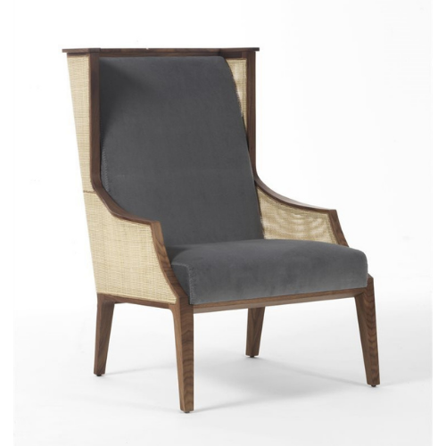 Кресло со структурой из массива ореха каналетта, обивка из тканей коллекции и подлокотники из индийского тростника. Вставка из цельного натурального клена в верхней части спинки. В версии, окрашенной мокко, видна вставка из клена, в то время как в версии, окрашенной в венге, она полностью покрыта. В этих двух случаях трость Индии окрашивается в тот же цвет, что и структура.Характеристики