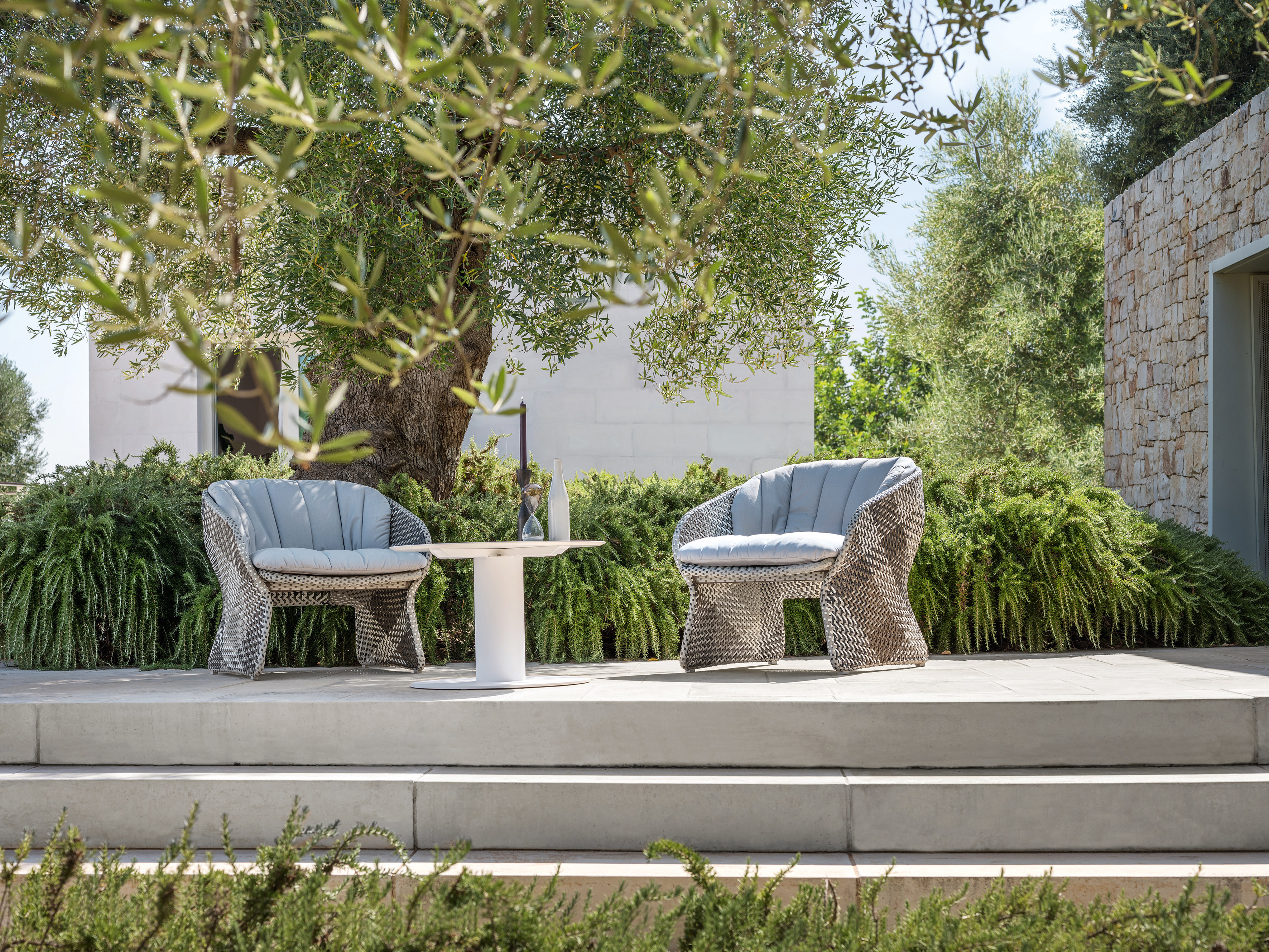 Садовое кресло Maat гостеприимно и функционально: его структура обернута широким переплетением с треугольным узором, сделанным из синтетических волоконных лент разных цветов, которые создают динамичный хроматический фон. Его объемы спроектированы так, чтобы обеспечить максимальную устойчивость и отличную поддержку спины и рук.Маат создан специально для отдыха на свежем воздухе, дома или в отеле.