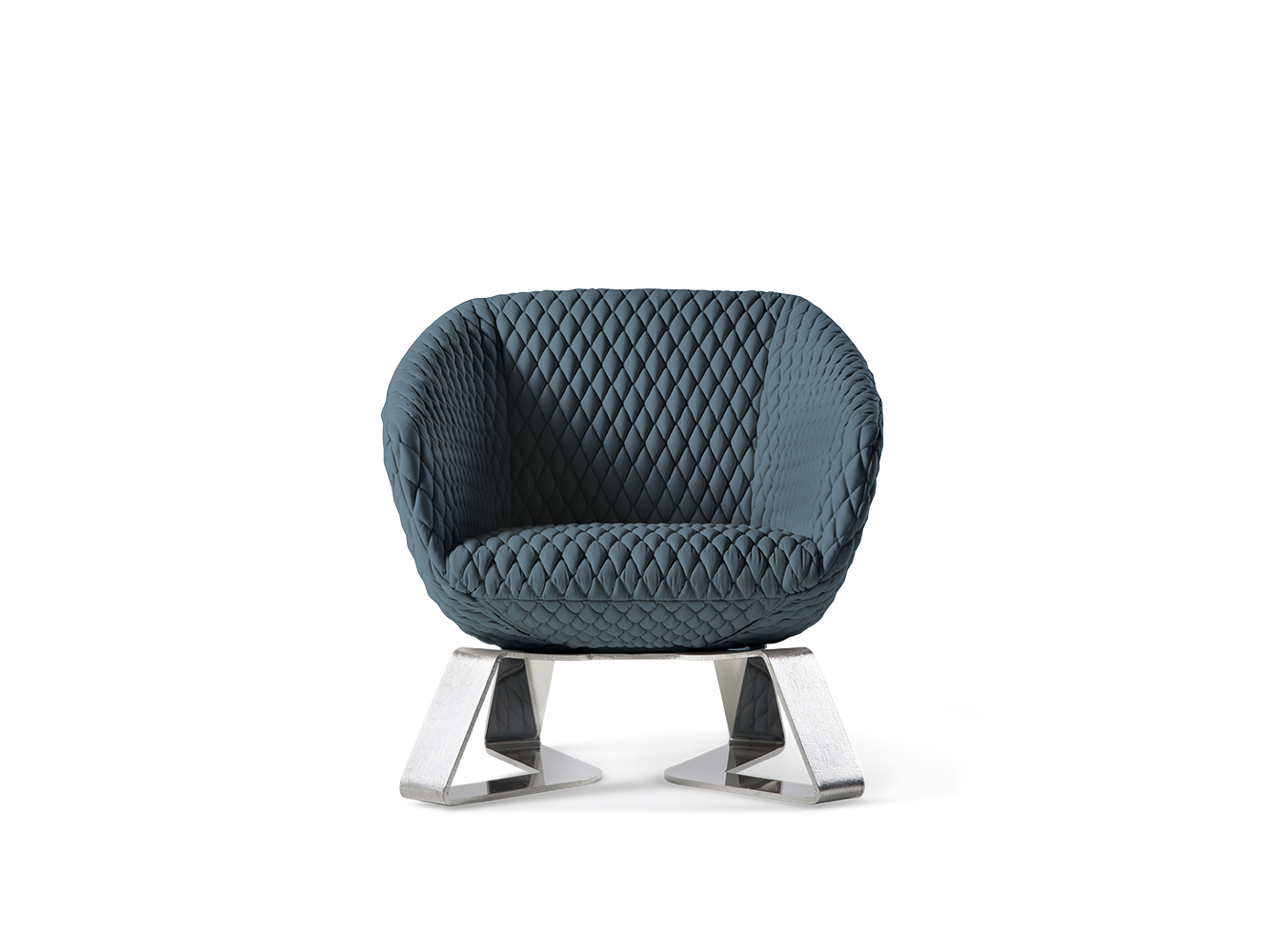 Кресло Oliver заметно напоминает стиль 1950-х годов. Сиденье обернуто ромбовидной стеганкой, которая создает трехмерный эффект света и тени. Металлическая структура, поддерживающий сиденье, украшен ручной скульптурной обработкой, которая создает изысканный геометрический эффект. Это кресло настраивается в версии кожи или ткани, как в хроматической отделке металла. Оно отличается от модели Oliver.1040 не только из-за размера сиденья, но особенно из-за массивности металлического основания, истинной “добавленной стоимости” этого кресла.Характеристики