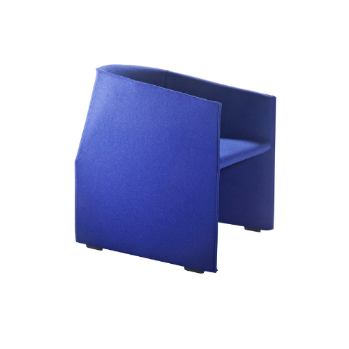 Поиск баланса между острыми углами и мягкими краями привел Габриэле и Оскара Буратти к созданию этого гладкого кресла, его U-образная спинка плотно облегает сиденье, плавно наклоняясь, формируя подлокотники. Его цилиндрическая стальная рама, стоящая на изящных ножках, дополнена гибкой полиуретановой пеной и полностью обернута ярко-синей тканью, что придает стильный вид монохроматическим декорам.Характеристики