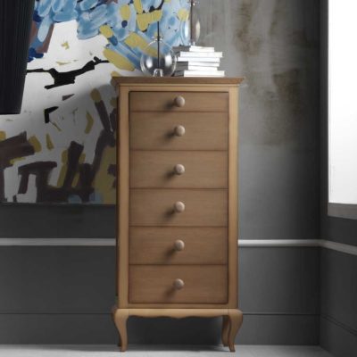 Комод с шестью ящиками с каркасом из цельной липы. Боковины, верх и задняя часть из столярного картона, облицованного дубовым шпоном, ящики из массива липы с многослойным дном. Ручки фасадов ящиков из массива ясеня.Характеристики
