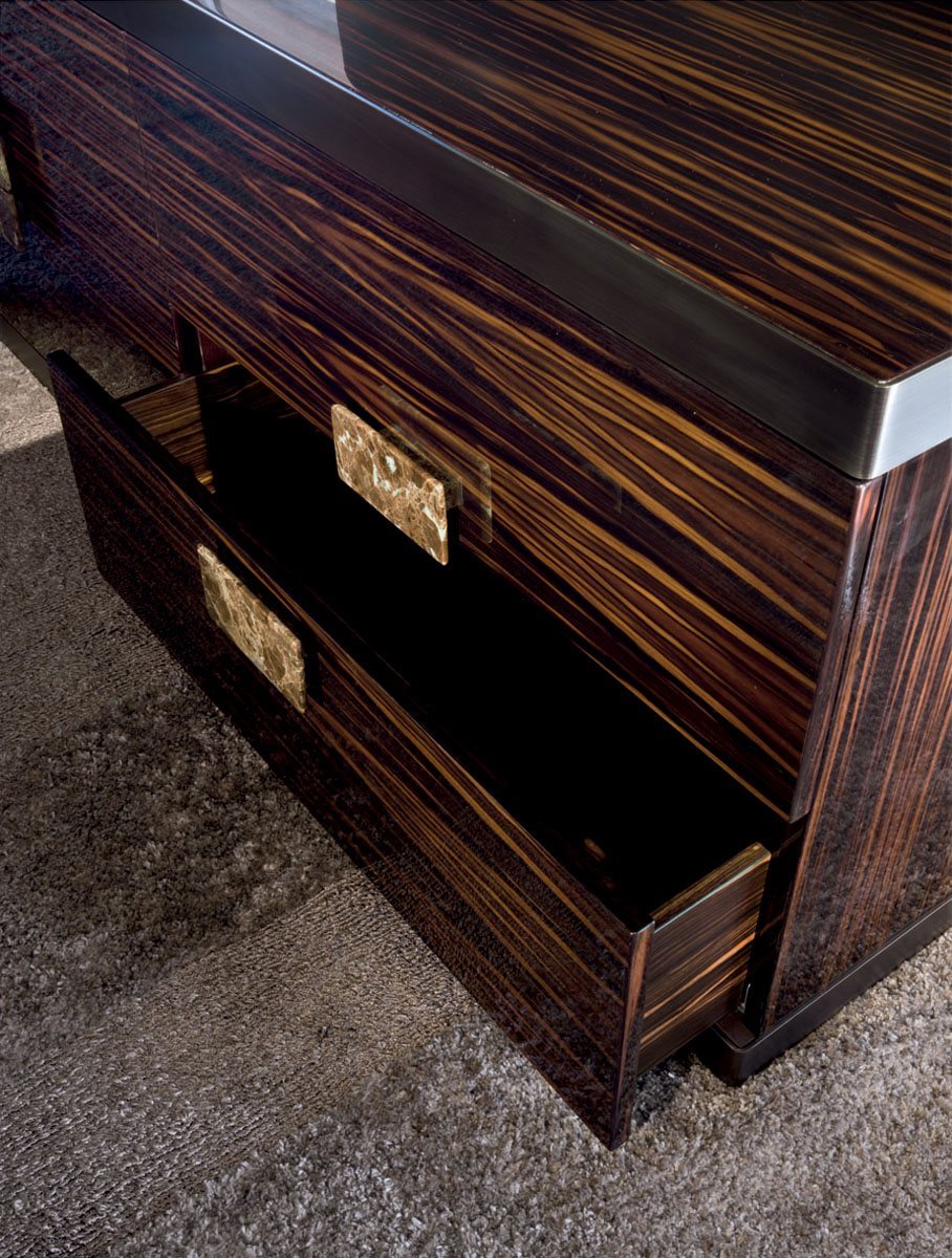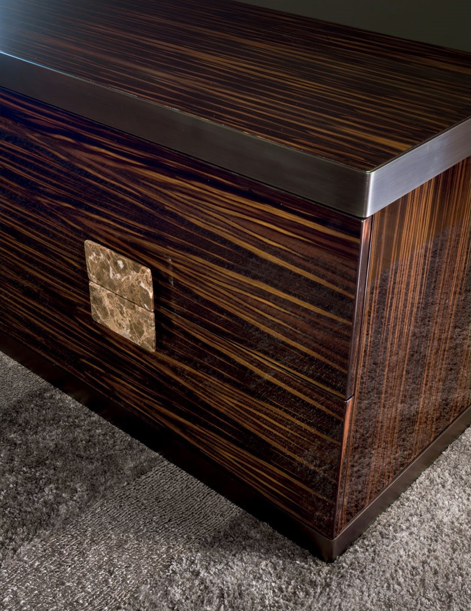 Комод из дерева с 4 ящиками, отделка: глянцевое лакированное дерево различных цветов, глянцевое / матовое эбеновое дерево, глянцевый / матовый орех Canaletto, глянцевый / матовый Sycamore frisè. Передняя часть ящиков обтянута кожей. Железная рама на основании и верхней части из шлифованного металла с отделкой: черное розовое золото, ярко-коричневый оттенок, яркое светлое золото, матовое золото цвета шампанского, глянцевый хром, яркий черный хром, матовая сатинированная бронза, яркое розовое золото, матовое розовое золото. Ручка из мрамора из ассортимента.Версия полностью покрыта кожей (включая боковые панели) с мраморной столешницей: мрамор Sahara Noir (полиэфирная отделка), мрамор Dover White, мрамор Panda White, мрамор Guatemala Green, мрамор Corteccia, мрамор Port Saint Laurent, мрамор Red Levanto, мрамор Bardiglio Nuvolato, Элегантный коричневый мрамор, мрамор Shale Rosewood, мрамор Emperador Dark, мрамор Silver Wave, мрамор Agatha Black, мрамор Frappuccino, мрамор Calacatta Gold, мрамор Fusion Light, мрамор Patagonia, мрамор Explosion Blu, многоцветный мрамор Fusion, кварцевый мрамор Juliet, мрамор Calcite Azul.