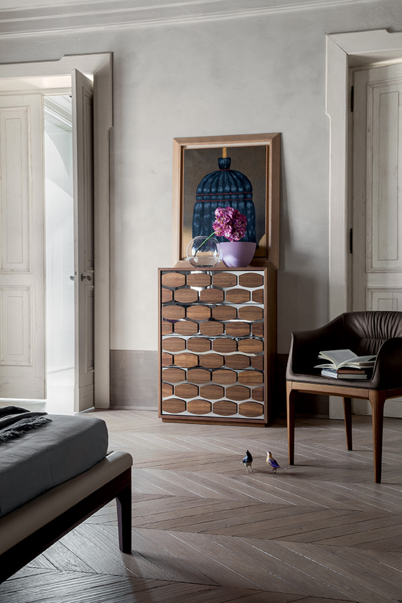 Комод, тумбочка и ящик: характерный стиль Honey Night, который мы производим на дереве. Черный и темный орех, термообработанный дуб сочетаются с зеркалами, расширяя всю комнату. Представлен в нескольких размерах.Характеристики