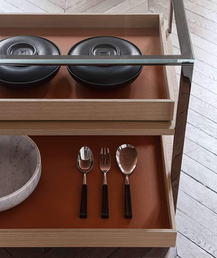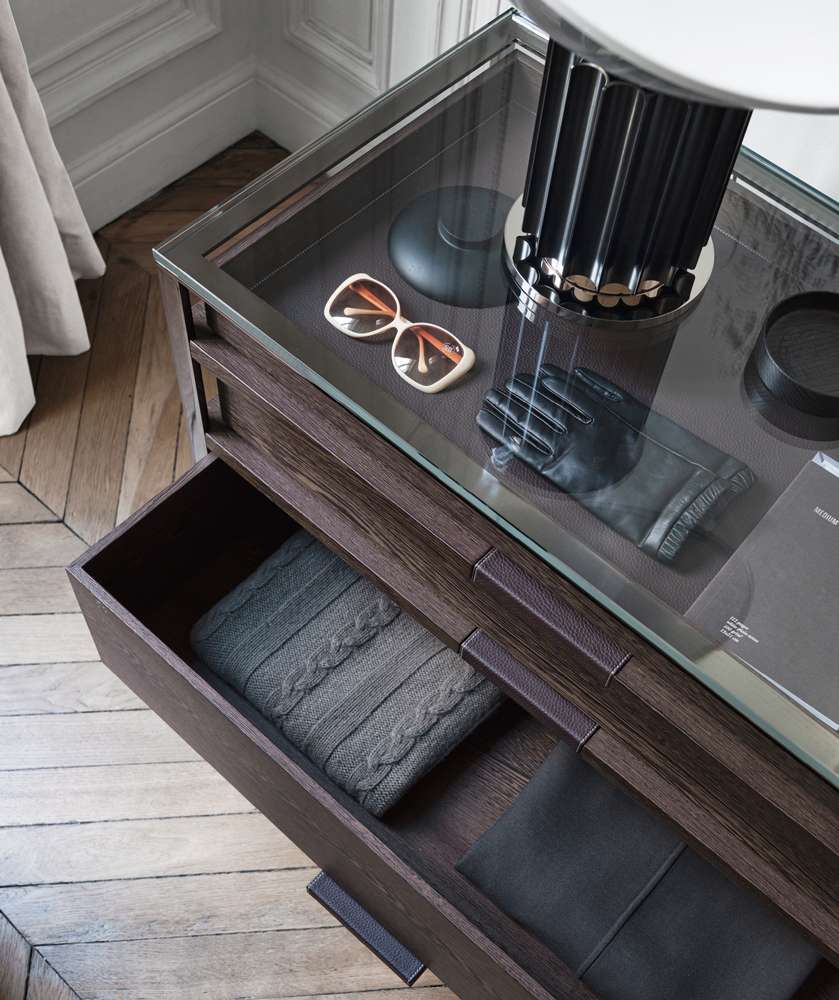 Серия шкафов / дисплейных элементов и низких таблиц, предназначенных для защиты и демонстрируют самые драгоценные объекты с отличной элегантностью. Идеально подходит для домов, так и для коммерческих пространств, которые будут размещены также в центре комнаты, эти кусочки позволяют просматривать их содержимое, извлеченные и переместившись легко с идеальным порядком. Шкафы доступны в одном размере (см.180x50x80h.) И в трех разных версиях с экстрагируемыми лотками и ящиками; Низкие таблицы доступны в двух версиях (см.90x130x43h. и см.180x130x43h.), как с извлекаемыми лотками. Все пары пары в прозрачном очень прозрачном стекле с окрашенными металлическими конструкциями в сложных цветах: бронзированный никель, черный хром, графит и янтарь. Полки, ящики и извлекаемые лотки - последняя с участием кожаной подкладки в колониальной или темно-коричневой коже - доступны в естественной венге и дубе в различных вариантах в коллекции: матовый свет, матовый черный, серый, копченый дуб.Характеристики