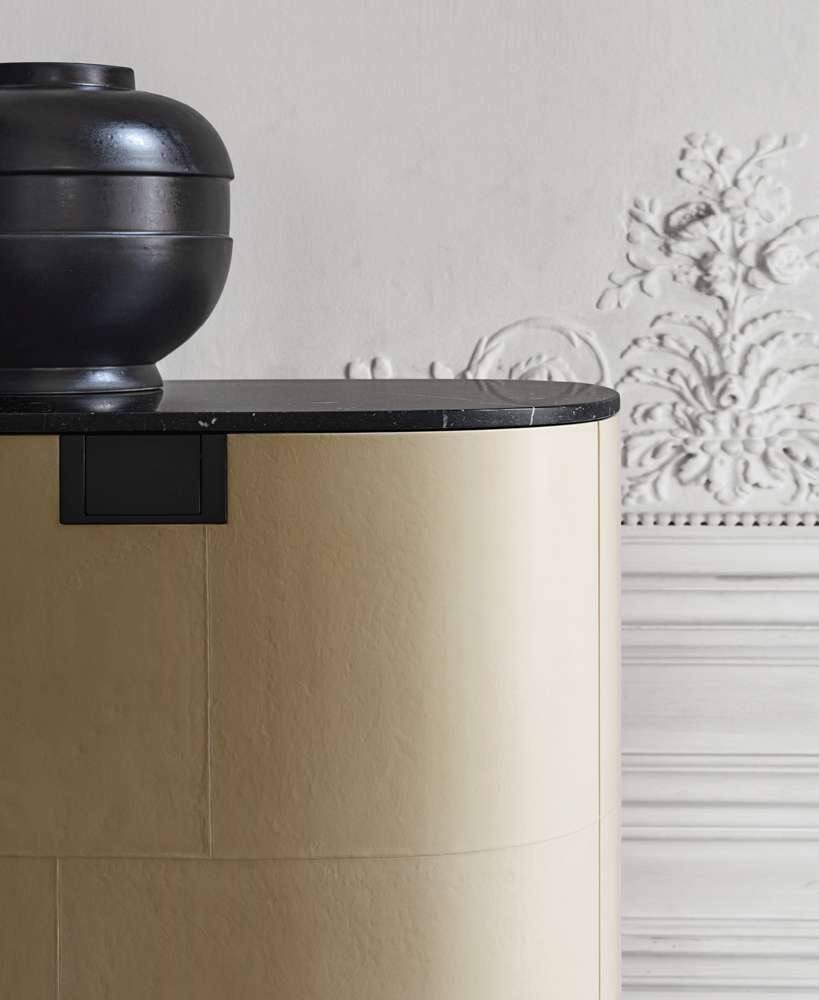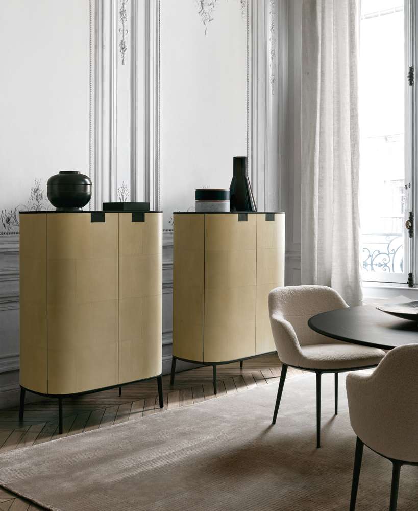 История превосходства Максалто продолжается с Tesaurus, серией изысканного хранилищ, разработанных Антонио Citterio. Форма подчеркивает высокое качество мастерства, начиная с изогнутых деревянных дверей, которые открываются для выявления слегка выступающих полков и непрерывный профиль, который следует за томом. Tesaurus доступен в трех разных высотах и ширинах, с двумя или четырьмя дверями, с ящиками и дверями заслонки. Основание является литой алюминиевой структурой, заимствованной из дизайна каратос, в то время как элемент выше, находится сверху в черной маркинии, белой калакатте или императоре мрамора. Интерьеры изготовлены из рафинации клена Фризе. Мастерство выражено в роскошном пергаменте или деревянной отделке. Оболерованный дуб или чилийский древесину тинео изготовлен с мотивом шашки с пересеченными зернами. Покрытие пергамента - это длительный и тщательный процесс и должен быть проложена специализированными мастерами, которые обучены уважать характеристики естественного материала. За прохождение времени пергаментная поверхность созревает так, что, как хорошее вино, он будет преобразован и приобретать новые изысканные оттенки. Благодаря сложным ручным процессам, присущим производственным процессам, ценность Тезавра сразу очевидно. Каждая часть в этой коллекции становится уникальным объектом, трудно имитировать и достоверно исключить.Характеристики