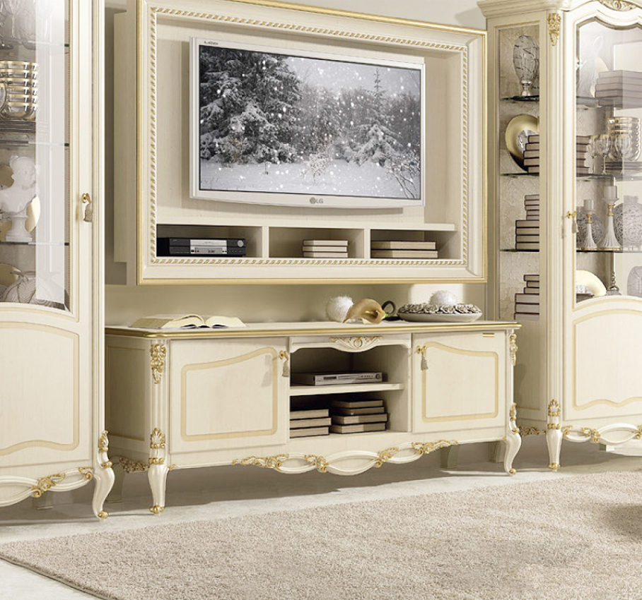Тумба под TV с двумя распашными дверцами и полками. Декорирована резьбой. Возможны другие варианты отделкиХарактеристики