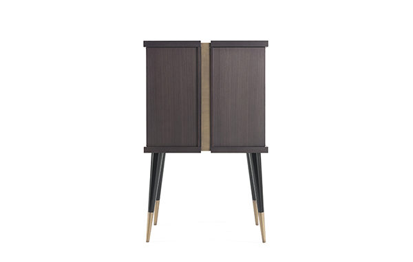 Обладая прочной структурой из дерева Tay дымчато-серого цвета с бронзовой центральной полосой, барная стойка Sean демонстрирует светлый интерьер с зеркалом и полированными латунными профилями, а наклонные ножки с латунным наконечником придают мебели винтажный вид.Характеристики