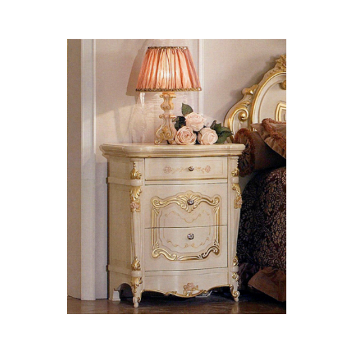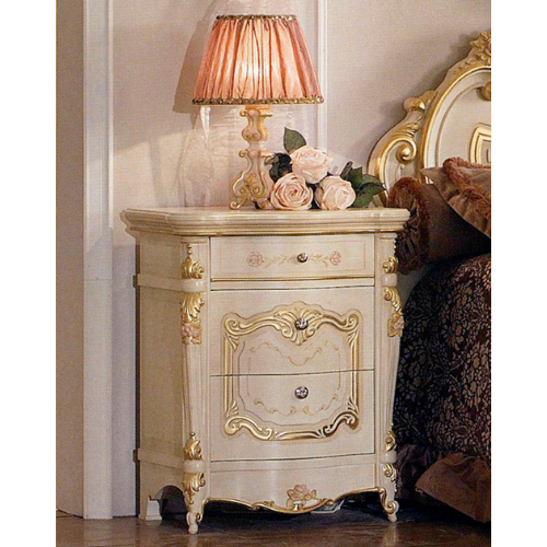 Прикроватная тумбочка с тремя выдвижными ящиками. Декорирована росписью и резьбойХарактеристики