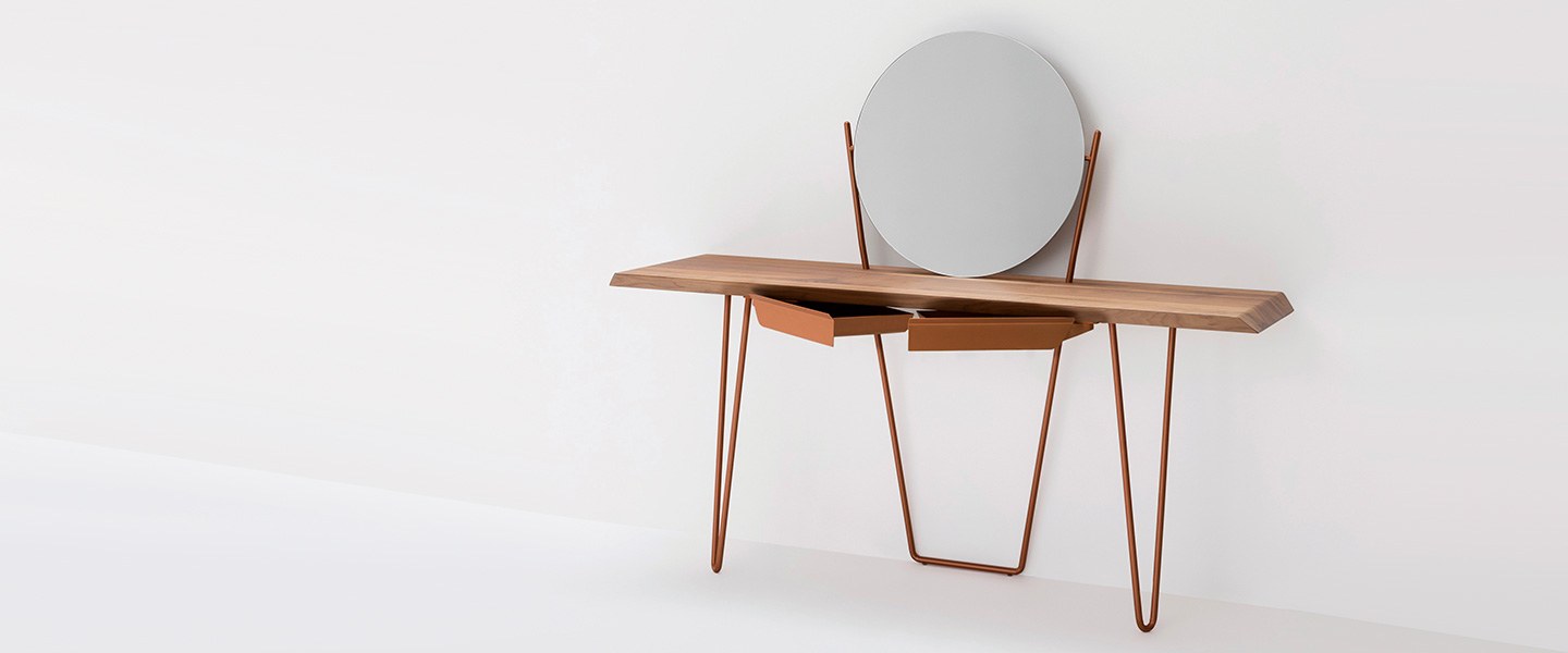 Консоль Coseno - Bonaldo - благодаря большому круглому зеркалу на столешнице и возможности комплектации двумя ящиками ее можно использовать как консоль, как туалетный столик, так и как зеркало.Характеристики