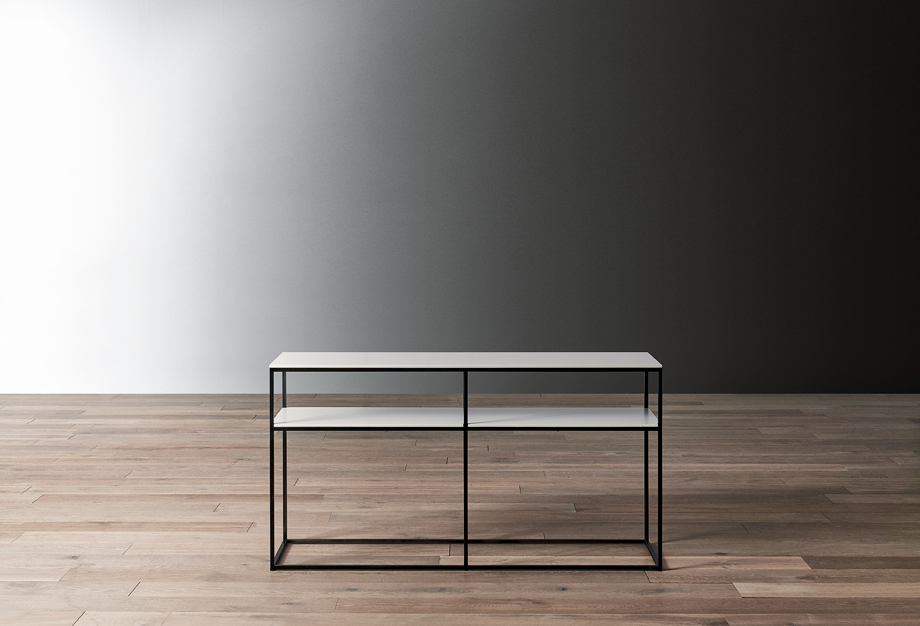 Коллекция консолей, в которых визуальная легкость является сильной стороной. Тонкий и почти воздушный каркас выполнен из металла, полки доступны в широком ассортименте отделки: от дерева до лака, от стекла до мрамора.Характеристики