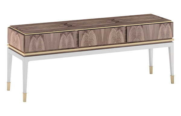 Эта очаровательная консоль идеально подходит для роскошной гостиной и может быть полностью индивидуализирована. Вы можете выбрать различную отделку древесины между оттенками палисандра и ореха промежности; Вы можете выбрать другой цвет кожи или поменять металл.