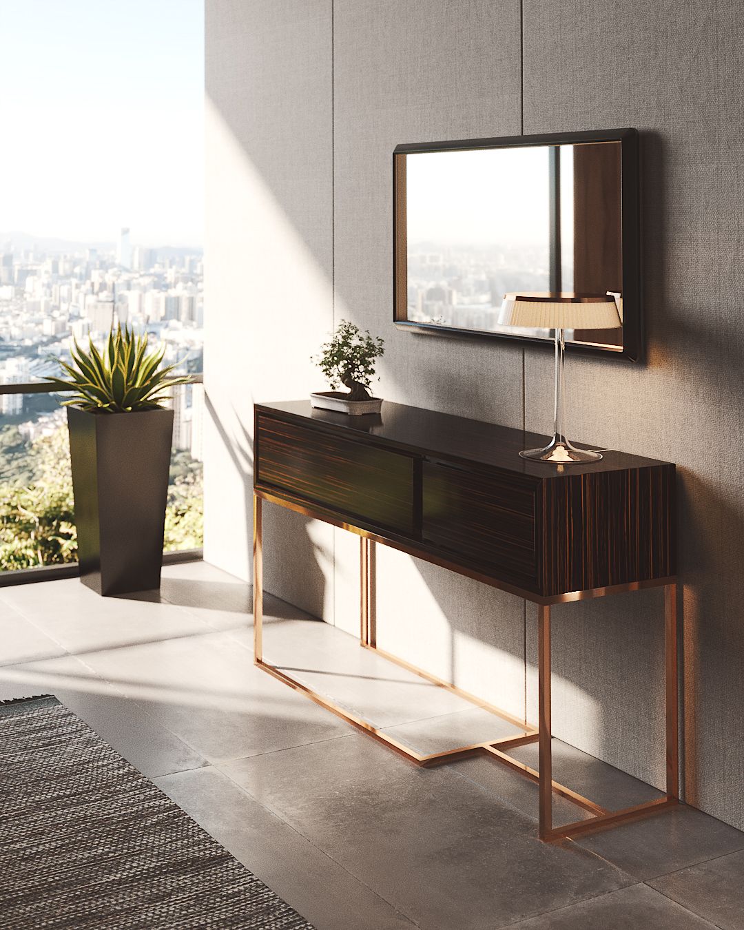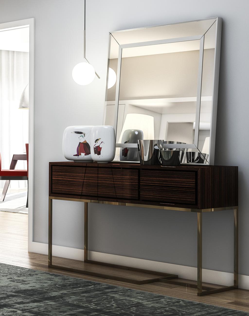 Консоль Missouri от португальского бренда Praddy в салонах ENRE в Киеве и Херсоне. Прямые поставки по Украине. Гарантия лучшей цены. Современная интерпретация геометрического языка, характерного для Arte Deco, знаменующего начало 20 века. Missouri - это отличительная консоль с опорной конструкцией из нержавеющей стали золотистого цвета и асимметричными ящиками, которые выделяются на фоне остальной конструкции.Характеристики