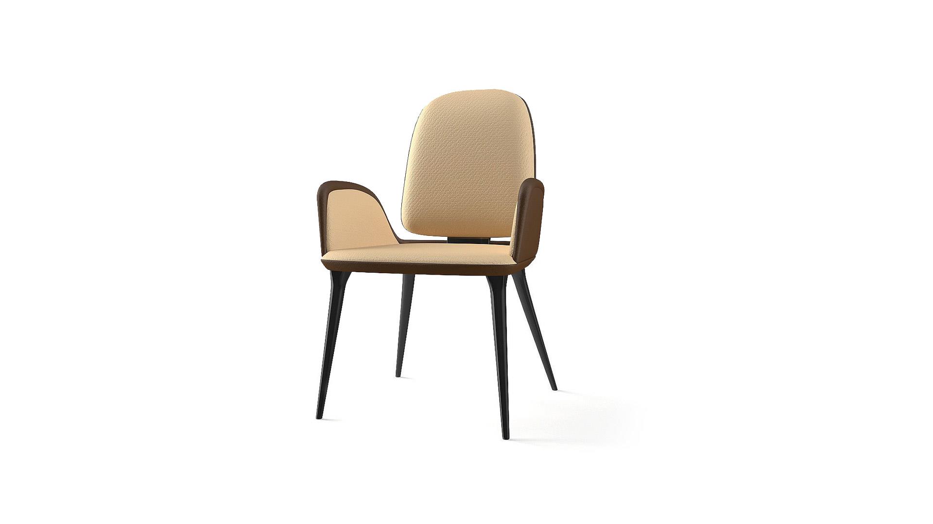 Стул с мягкой деревянной конструкцией. Обивка доступна из ткани или кожи.Деревянные ножки из дуба Beluga или из темной сатинированной латуни.