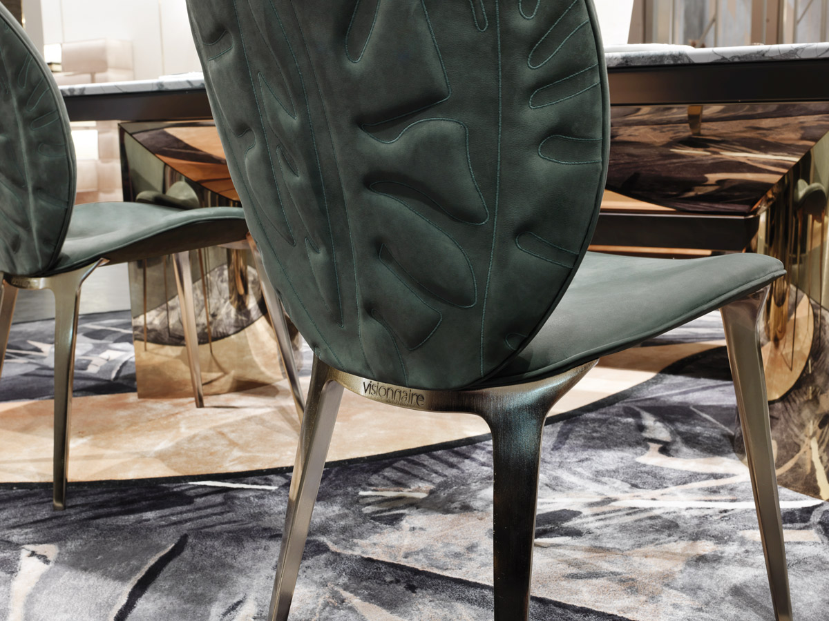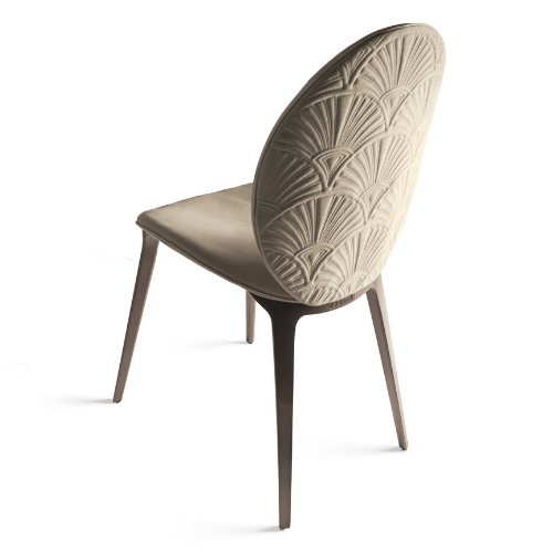 Мягкое кресло с изогнутым деревянным каркасом, обитое кожей или тканью. Ножки из литого алюминия доступны с металлической отделкой. Задняя часть также доступна в «стеганой» версии из кожи с вышивкой и слегка набивной листвой.Характеристики