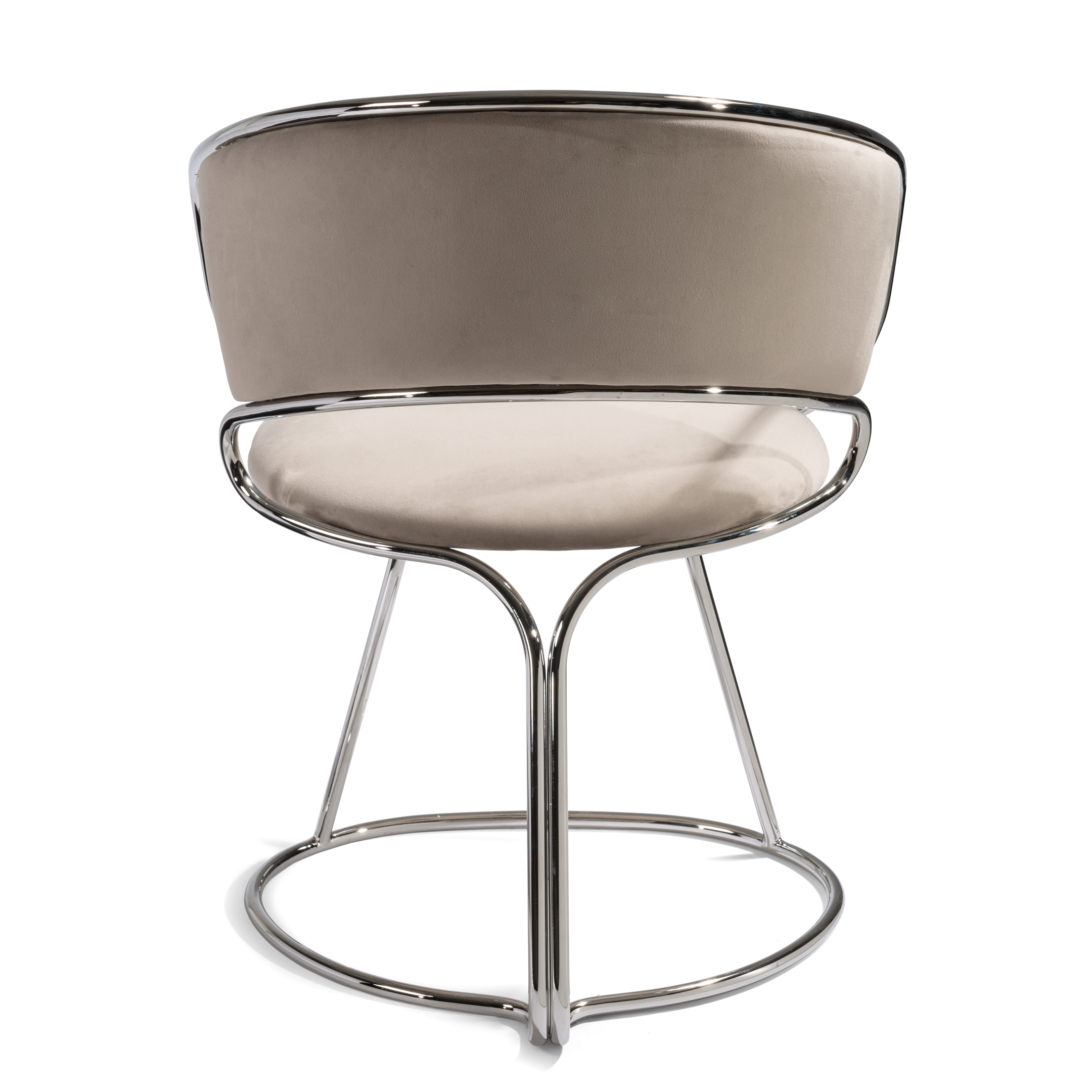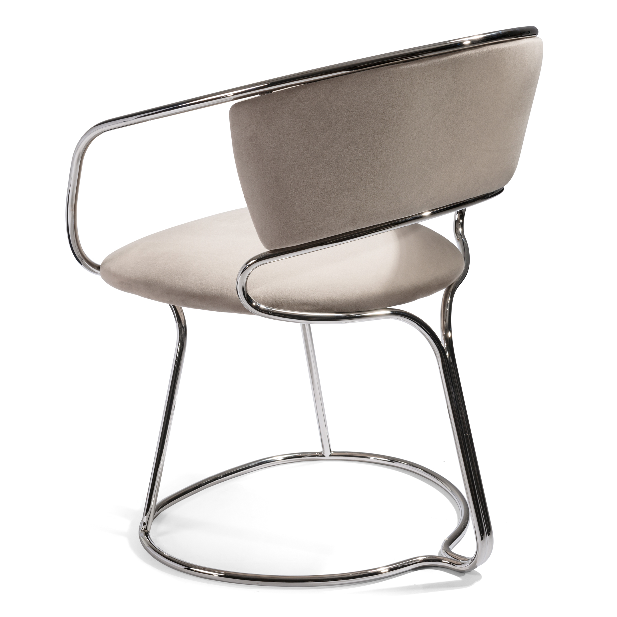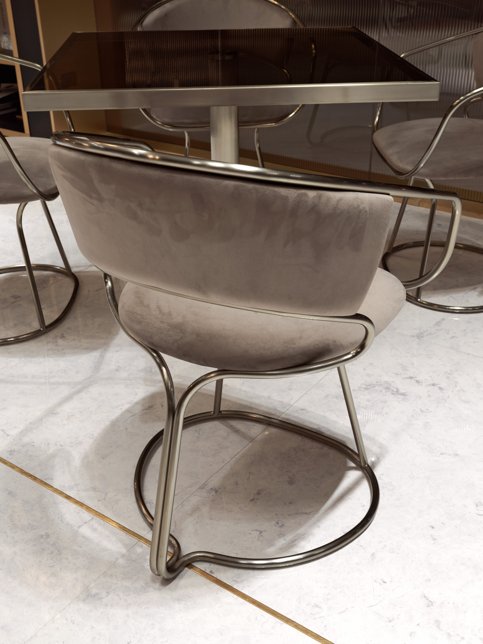 Стул из блестящего трубчатого металла Ø16 мм, изогнутый и сваренный как одно целое. Мягкое сиденье и спинка со структурой из гнутого дерева и полиуретана, окруженные трубчатым металлическим каркасом и обитые кожей или тканью. Каркас может быть отделан любым лаком на выбор по выбору лакокрасочного покрытия по металлу.Характеристики