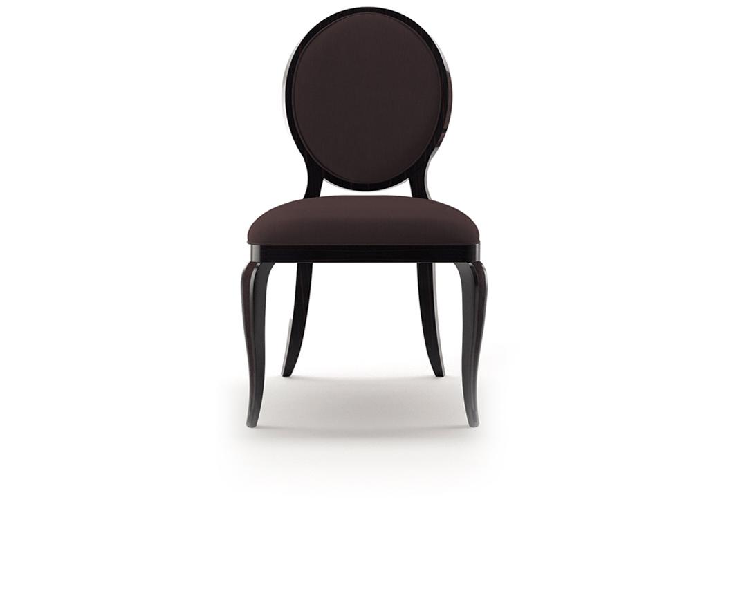 An elegant chair with accentuated classic forms, with oval back and sinous legs rivisited in an absolutely contemporary key. Structure in solid wood ebanized or lacquered. Back and seat upholstered. Available in armchair version.Характеристики