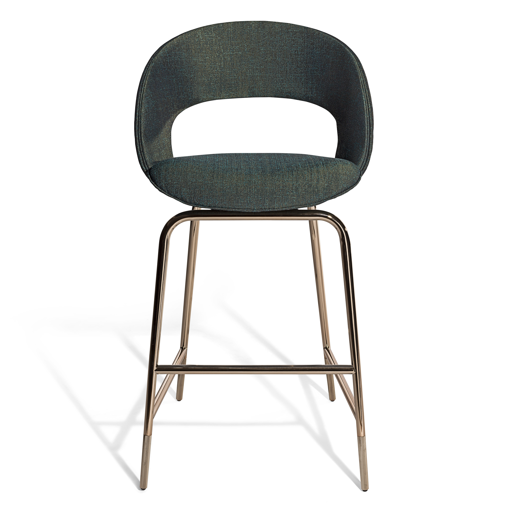 Внешняя конструкция из гнутого дерева, ножки в металлической конической трубе и точеные ножки. Стеганая обивка из кожи или ткани и отделка по краям в тон. Металлические детали можно покрыть лаком любого цвета, входящего в выбор металлической отделки.Характеристики