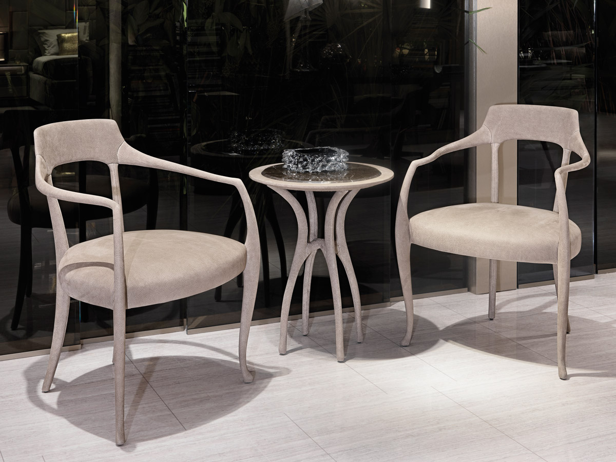 Каркас из массива дерева, полностью обтянутый кожей. Сиденье с обивкой из полиуретана разной плотности.Характеристики