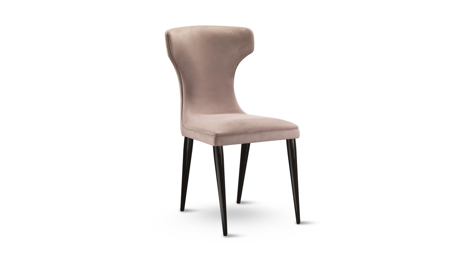 Стул с вспененной структурой. Доступны с деревянными ножками в глянцевой лакированной отделке nero beluga или с металлической основой с хромированной или матовой латунной отделкой. Обивка тканью, бархатом или кожей.Характеристики