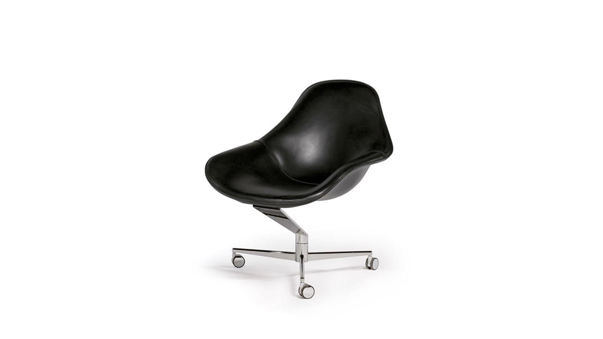офисное кресло доступно с высокой или низкой спинкой.Обивка тканью или кожей. Основание на ножках с колесами из блестящего алюминия или матовой латуни