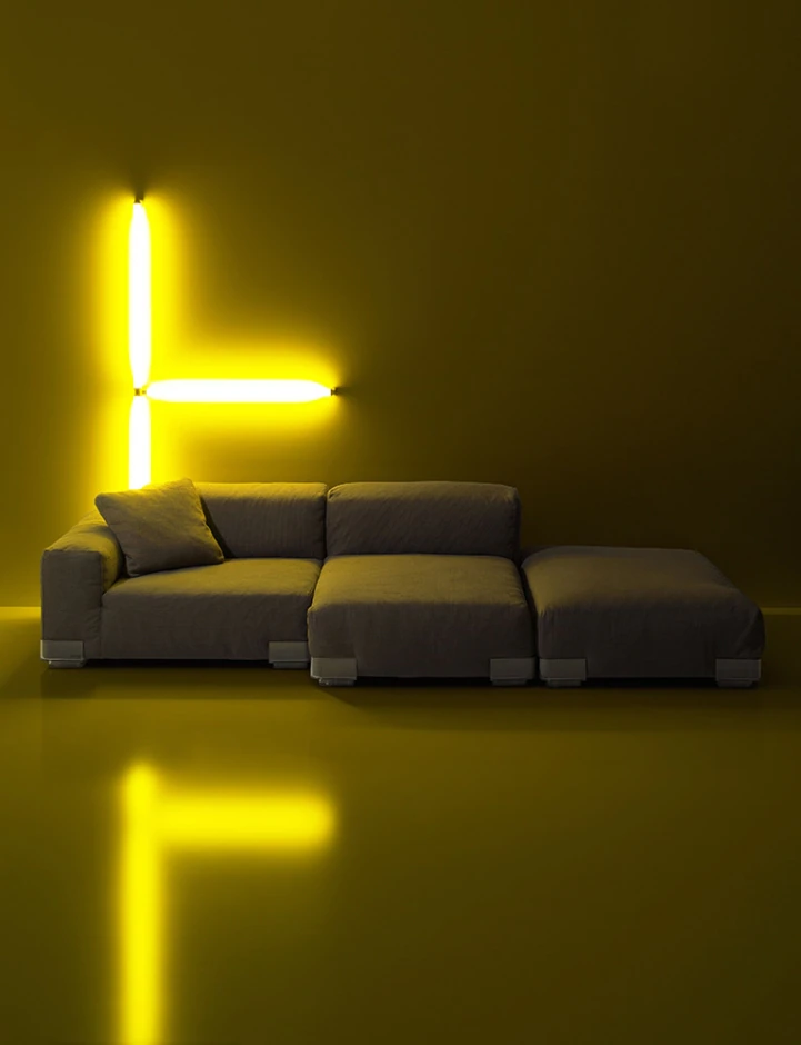 Plastic Duo - модульный диван строгих линий с большими подушками из гусиного пера и флока. Коллекция Pop дополняется креслом с такими же характеристиками и пуфом, который можно использовать индивидуально или как часть композиции.Характеристики