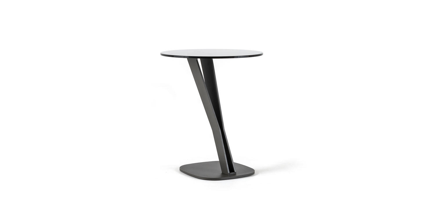 Приставной столик для дивана с основанием из лакированной стали с тиснением под графит (GFM69). Столешница из прозрачного или дымчатого стекла.Характеристики
