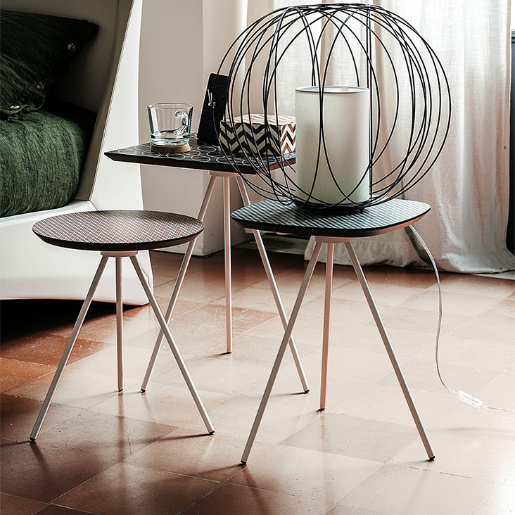 Журнальный столик с основанием из стали с тиснением под графит (GFM69) или белый (GFM71). Топ из набивного клена с геометрическим рисунком.Характеристики