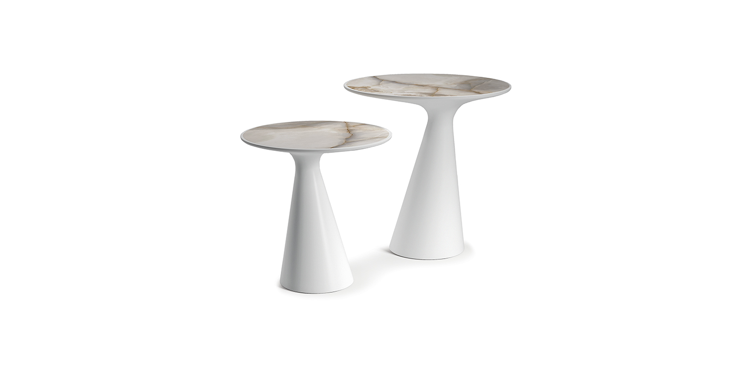 Журнальный столик из жесткого полиуретана, окрашенного в белый матовый (OP71) или титановый (M11) цвет. Керамический столешница Marmi Alabastro (KM02), Ardesia (KM04), матовый Portoro (KM07), глянцевый Portoro (KM08), Emperador (KM10), Makalu (KM11), Breccia (KM12) или Arenal (KM13).Характеристики