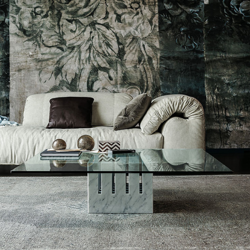 Журнальный столик с основанием из белого каррарского (BC) мрамора. Столешница из прозрачного стекла.