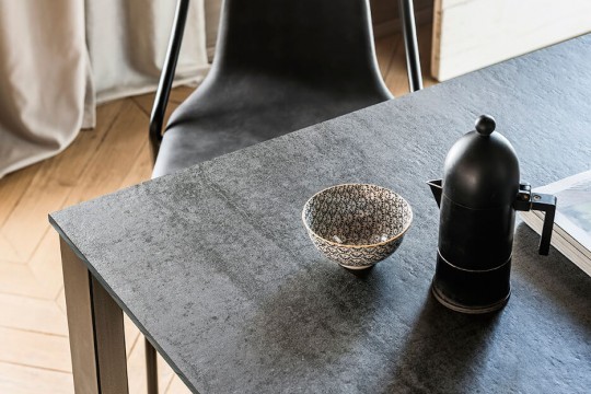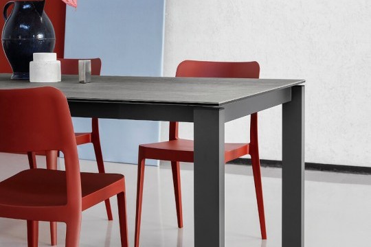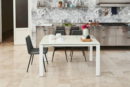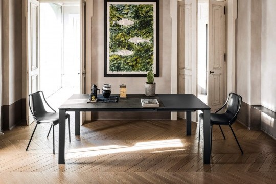 Удлиняемый стол Badù с лакированной стальной конструкции и столешницей, изготовленный из нескольких материалов и отделки.Характеристики