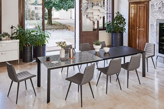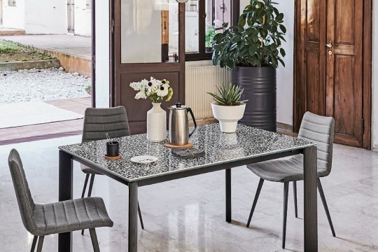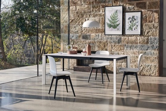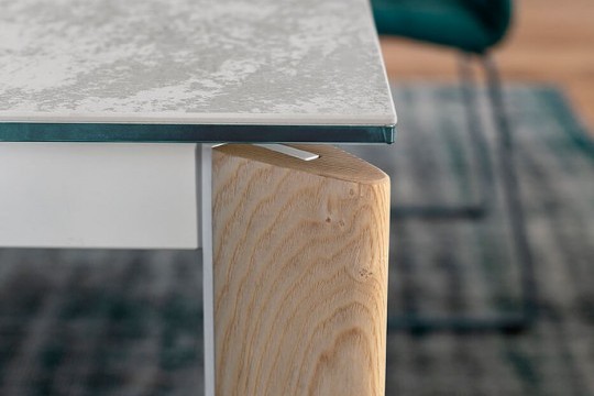 Расширяемый стол со стальным каркасом с лакированной стали и ножками, обработанными деревом. Верх доступен в меламина, лакированном дереве, Fenix, хрустале или кристалокерамици.Для версий размером 140x90 доступен верх в шпонированные лакированном покрытии пламенный орех.