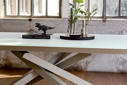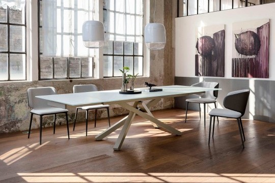 Печино - це стіл для вітальні или ідальні у фіксованому или розширюваному варианту. Металева основа - это цікава гра в переплетенные металлы балки, які підтримують верх, вибраний из масиву дерева, скла или шпону. Стіл Печино з його сучасним дизайном також рекомендується для облаштування відкритих просторів. Pechino, у розширюваній версії, доступный виключно со скляною вершиною и відповідними розширеннями. У фіксованій версії, окрім скляної верхівки, вибір також поширюється на масив деревини дуба з прямо или цільним горіхом з крам ефекту кори или шпоновану деревину.Характеристики