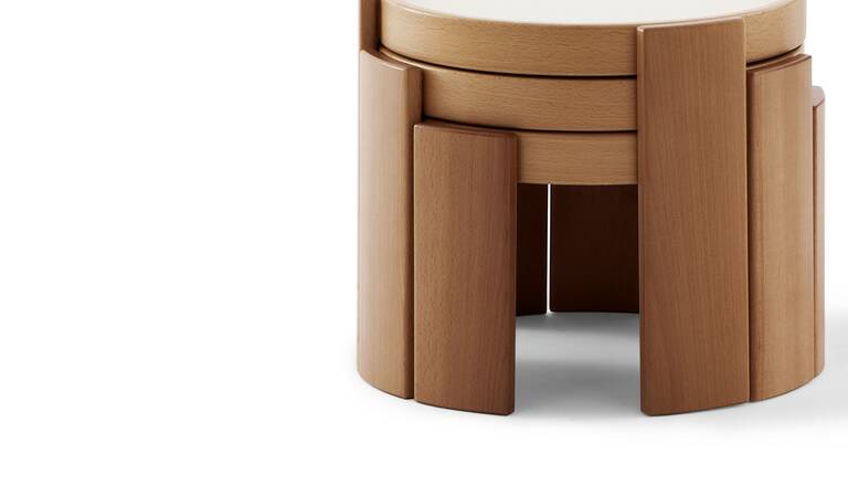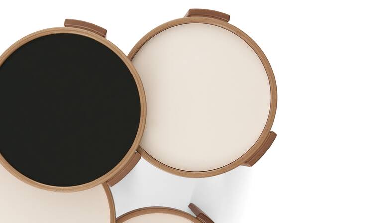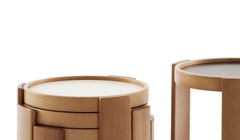Низкий столик из лакированного дерева имеет двустороннюю столешницу из ламинированного натурального монохромного пластика, которая после поднятия показывает другую цветную нижнюю часть с контрастной лаковой отделкой.Характеристики