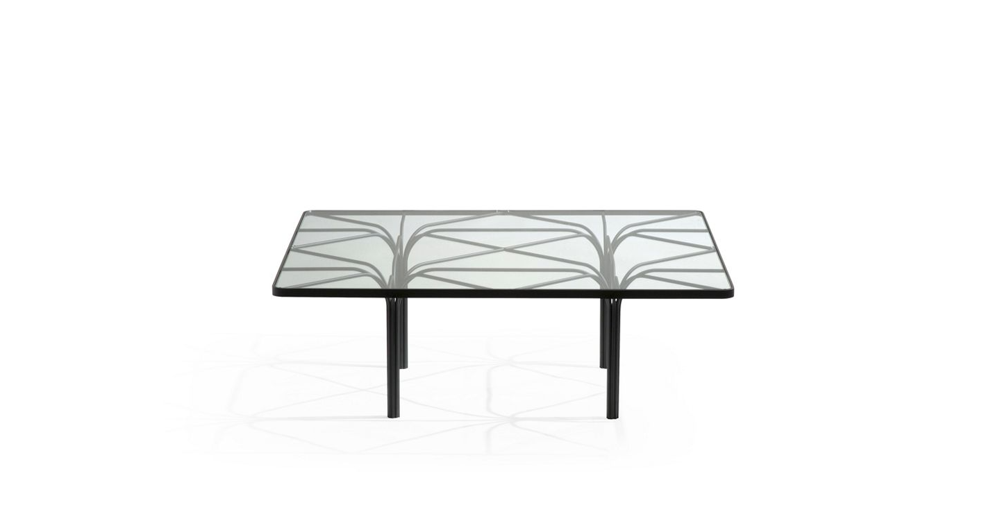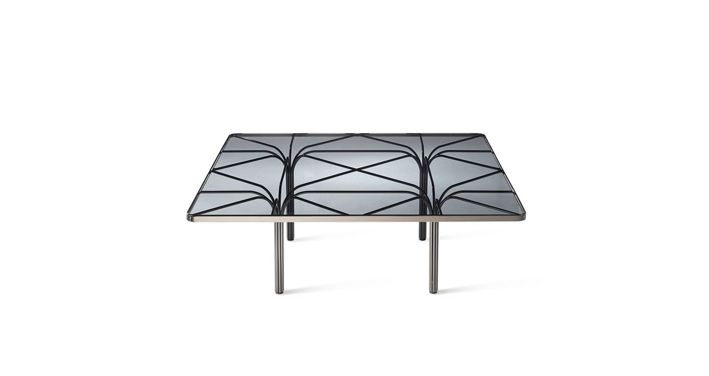 Каркас из стальной проволоки, покрытой эпоксидным лаком (доступно 3 цвета), которые соединяются, образуя основу. Столешница из натурального стекла толщиной 8 мм.Характеристики