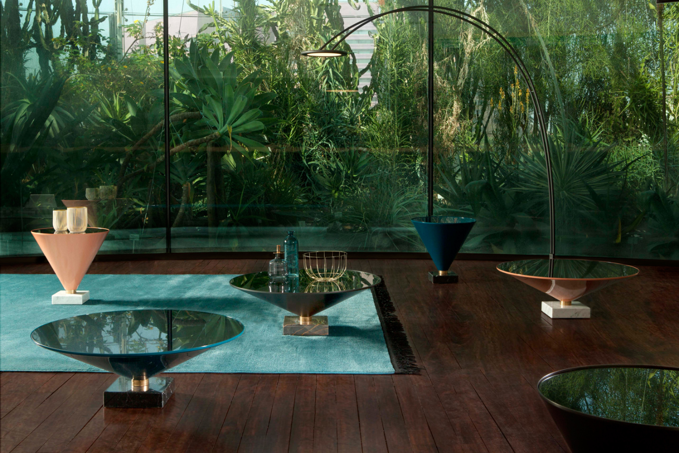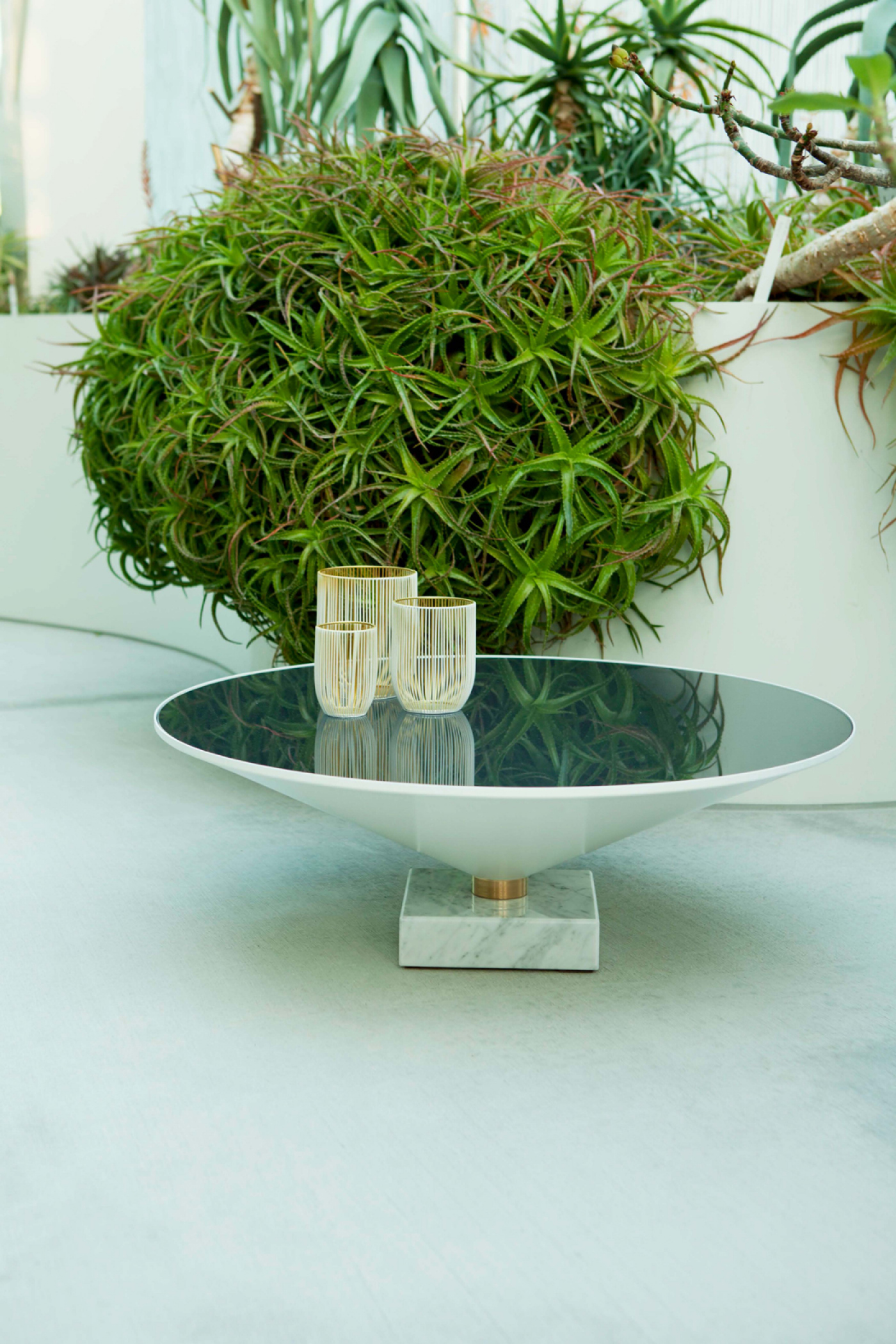 Flute — это фигура, которая одновременно напоминает изящное стекло и спокойную, расслабленную поверхность озера: мраморное основание создает прочную точку опоры, которая расширяется в широкой металлической раме, что делает её основанием для скошенной поверхности из дымчатого прозрачного стекла.Характеристики