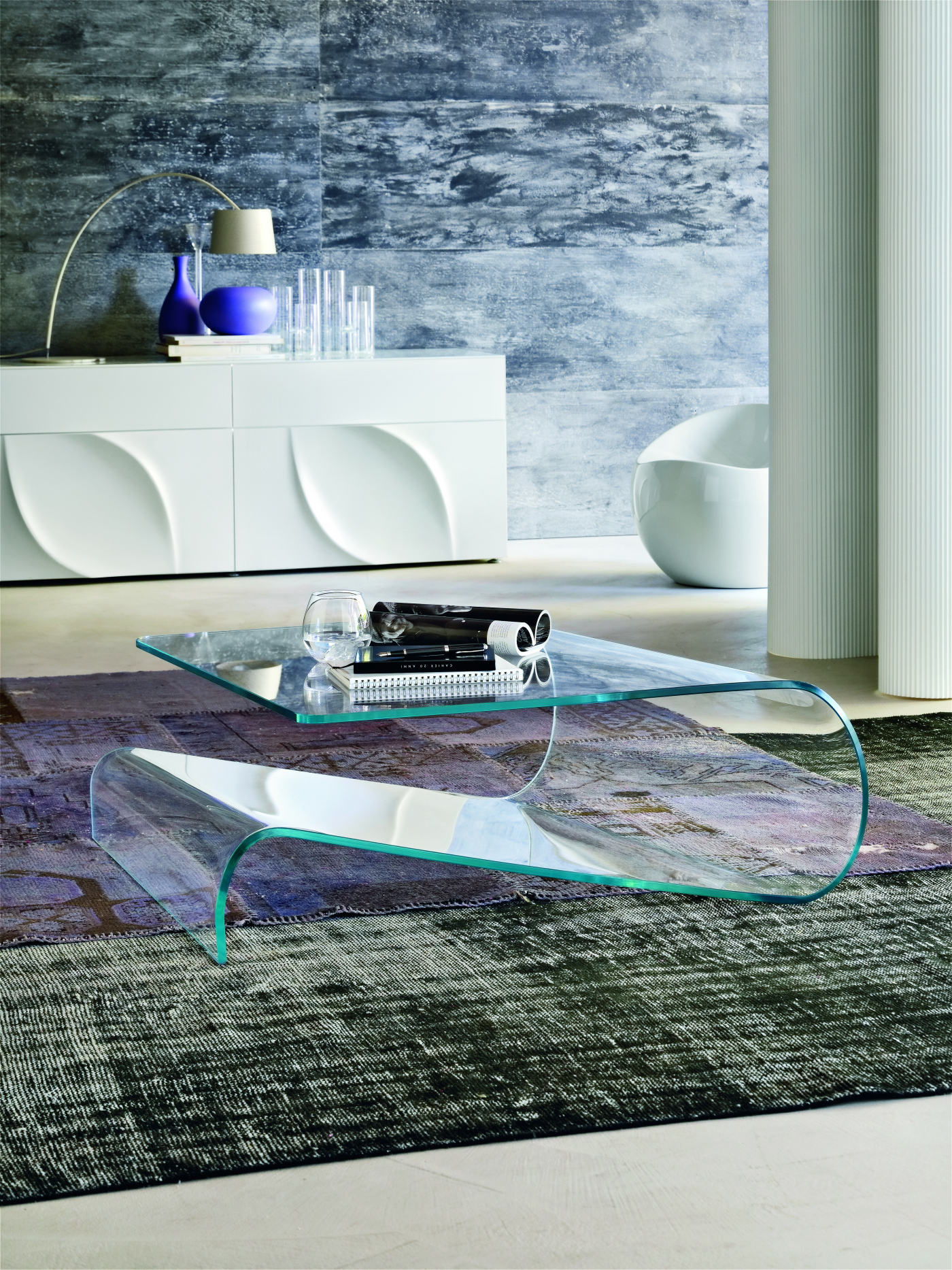 Цельная, гнутая полоса стекла, которой придали форму для того, чтобы быть опорным основанием и блоком для хранения. Завеса, легкая и изысканная; незаменимая.Характеристики