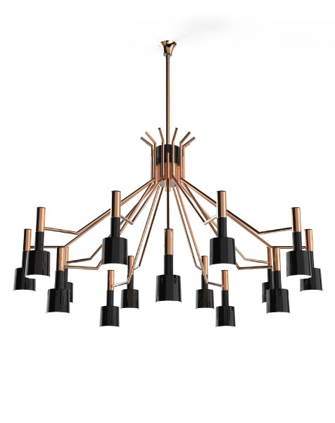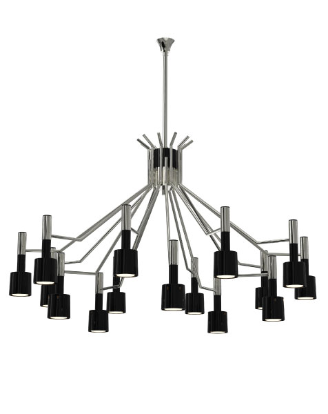 Совмещая в своем изготовлении латуни для корпуса и алюминий для абажуров, этот дизайн совмещает в себе современные технические знания с традиционным мастерством лучших португальских ремесленников. Корпус имеет отделку никелем, а абажуры покрыты глянцевым черным. Потрясающая современная mid-century люстра, идеально подходящая для современной гостиной или столовой.Характеристики