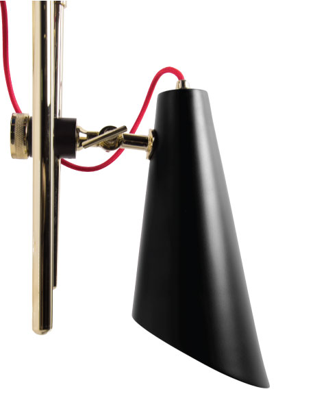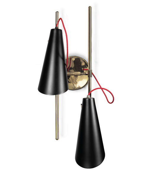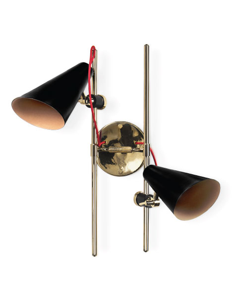 Это современное настенное бра разработано и изготовлено вручную в Португалии, что обеспечивает высокий уровень мастерства. Крепление лампы и корпус изготовлены вручную из латуни с позолоченной отделкой, а абажуры изготовлены из алюминия в стандартной матовой черной отделке. Этот бра оснащен двумя подвижными рассеивателями, которые можно отрегулировать как вверх, так и вниз, чтобы создать более уютную атмосферу.Характеристики