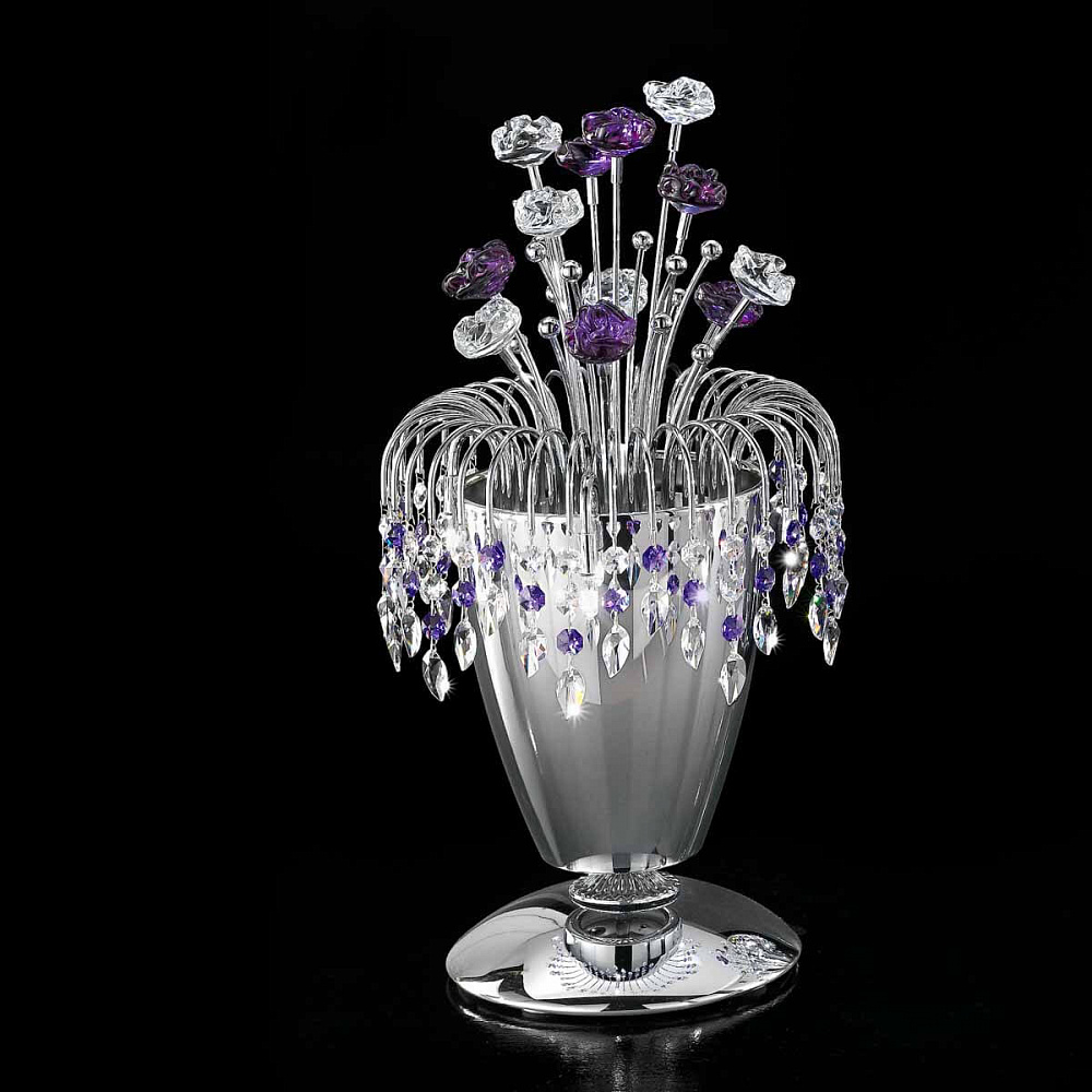 Металлический корпус доступен в отделке светлое золото или хром.Детали из прозрачного, фиолетового, янтарного стекла.