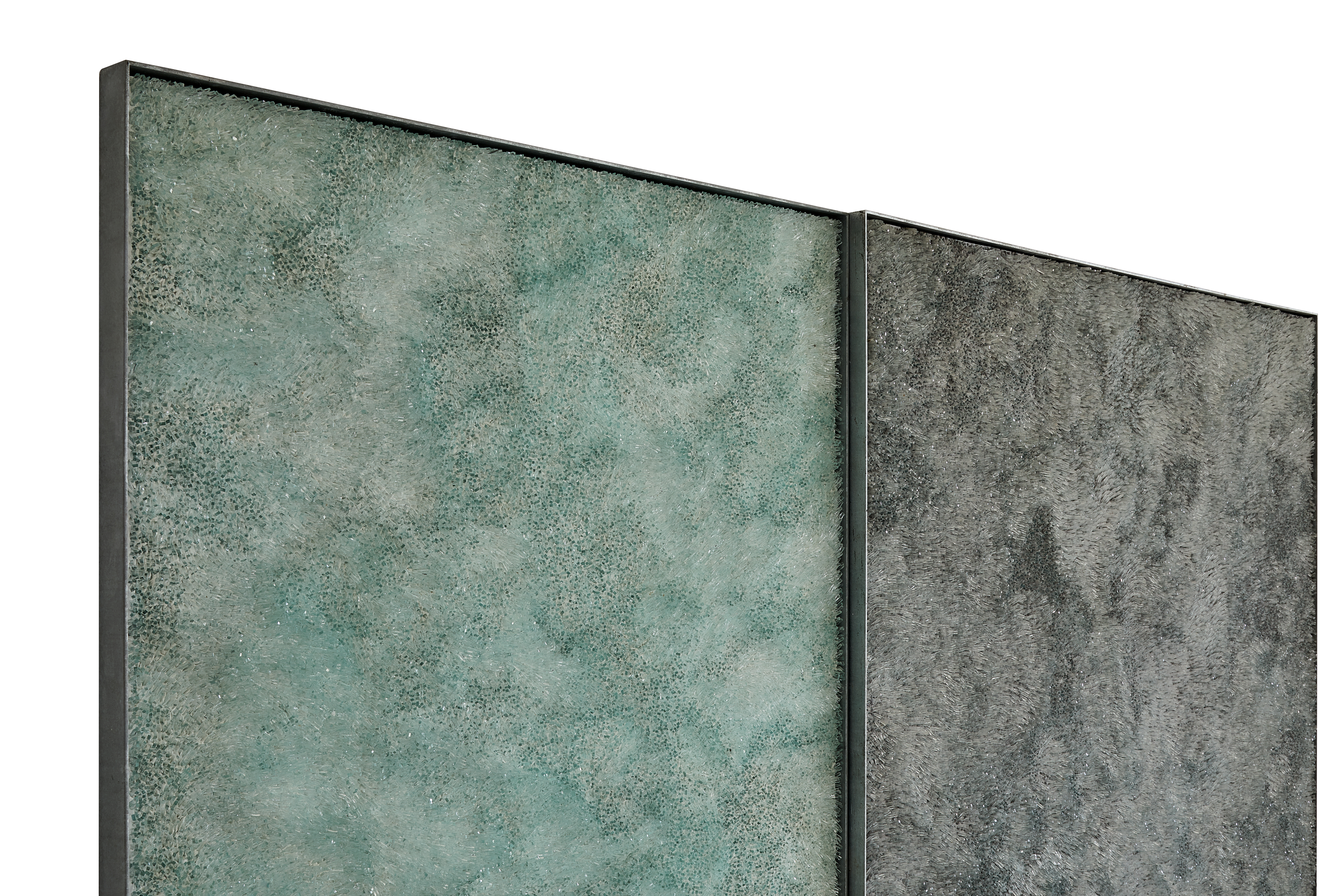 Скло та розчин на дерев'яній панелі, оцинковане залізо.Характеристики