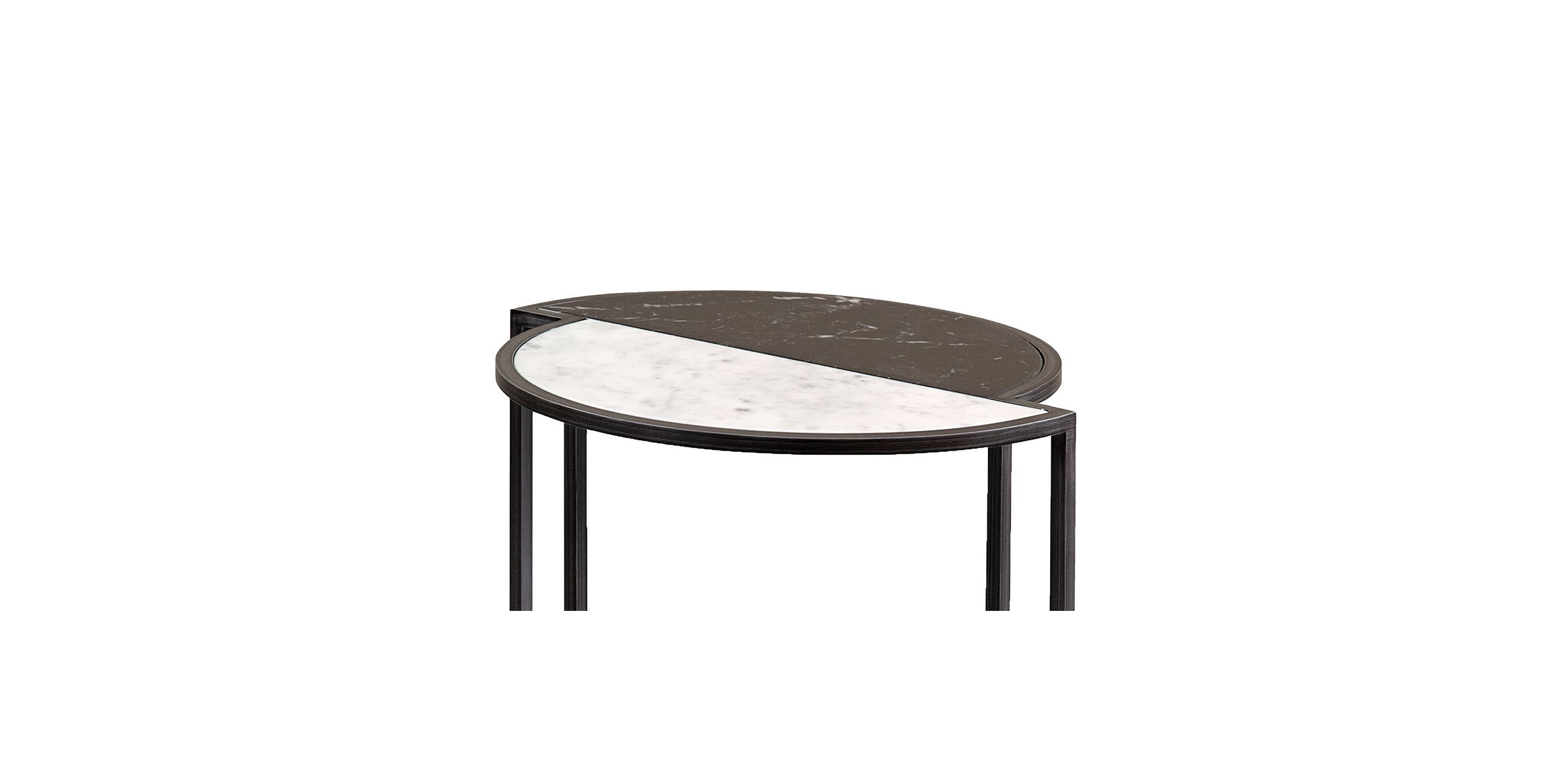 Стіл на п’єдесталі з двома мармуровими стільницями поруч, одна в Маркині, а друга в білому Карраре. Основа в металі (2 обробки). Виробляється в ЄвропіХарактеристики