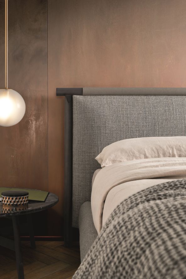 Ліжко Nathan може похвалитися знаковою дерев'яною конструкцією, оббитою аркушем шкіри на узголів'я ліжка, яка розробляє та визначає його форму, одночасно вміщуючи м’які подушки та роблячи ліжко міцним та зручним.Характеристики