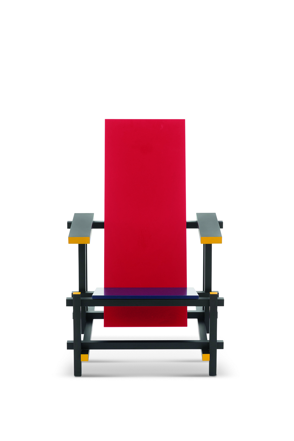 Ретвельд працював над ранніми зразками цього крісла з високою спинкою, інтерпретуючи філософію просторової організації за допомогою плоских поверхонь та монохромних просторів, які перетинаються.Характеристики
