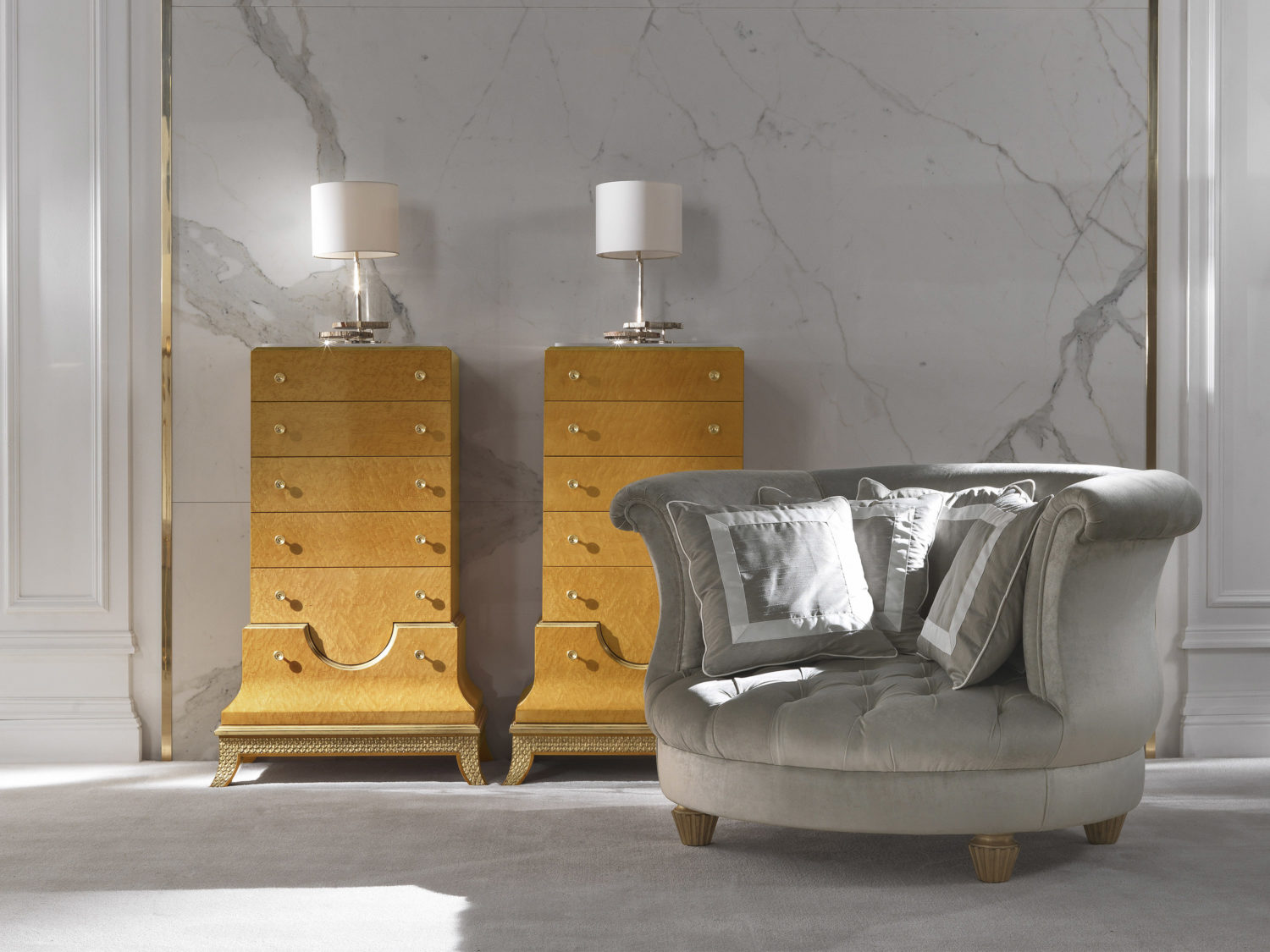 Структура в багатошаровому клені орлиного пташиного ока з глянсовою обробкою. Шість ящиків. Деталі з обробкою під старовинне золото. Top in White Намібія мармур Rinho.Характеристики